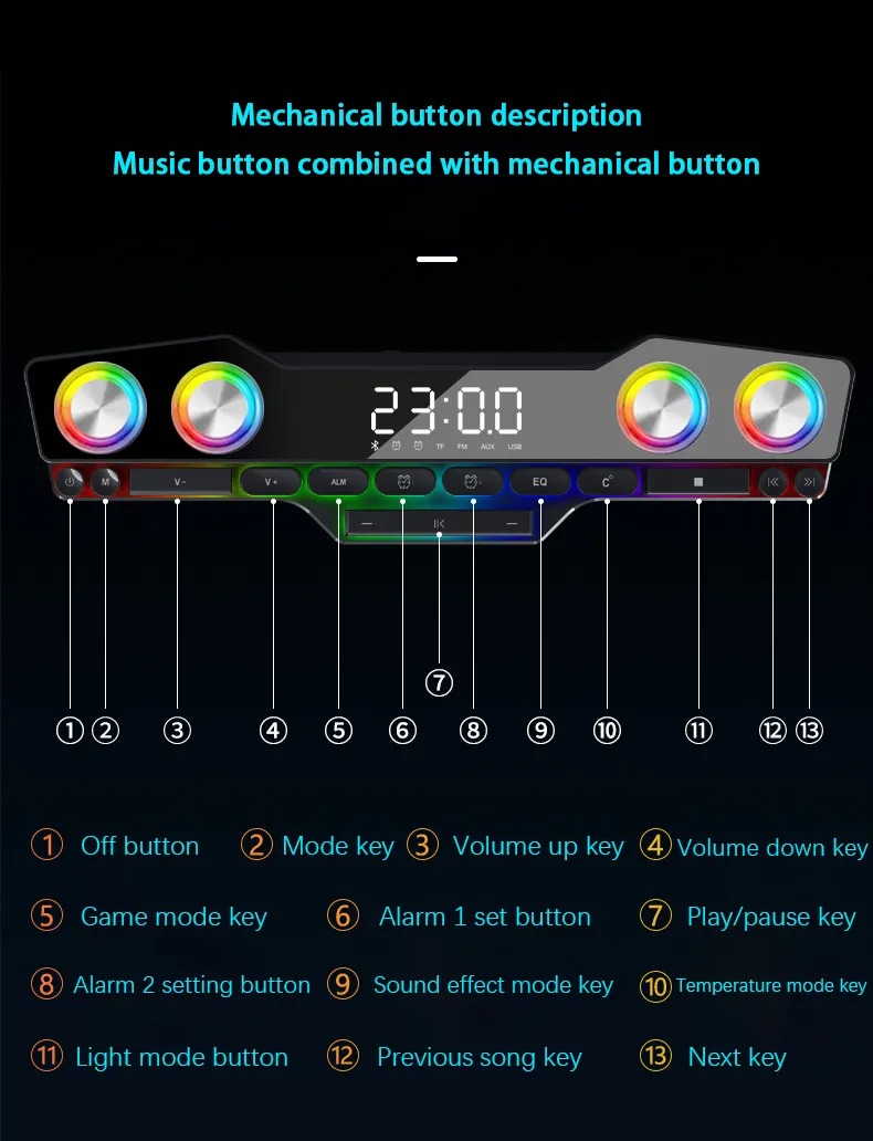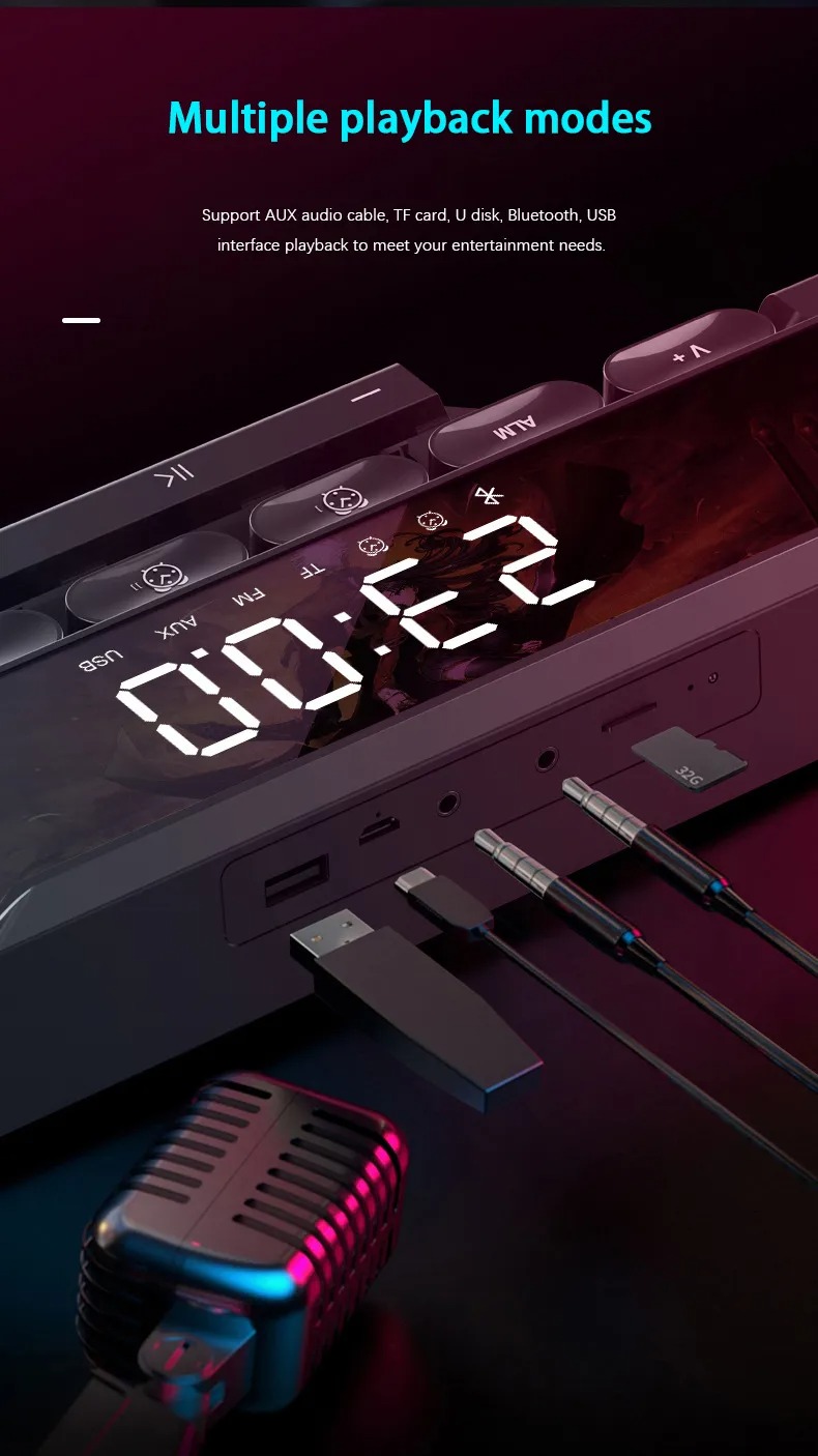 Функция будильника + Функция часов + температура + красочное освещение, оснащено