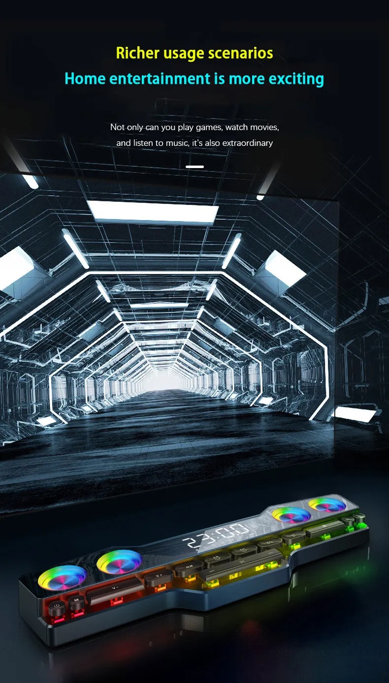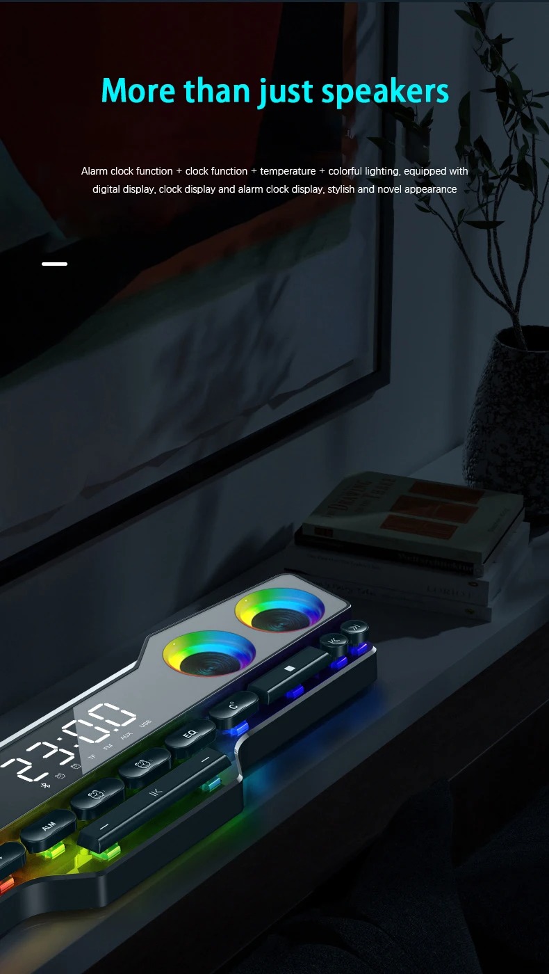 4000 мАч звуковая коробка Bluetooth-динамик Звуковая панель USB 3D стерео сабвуфер AUX FM домашние часы для дома для компьютера динамик мощный бас
