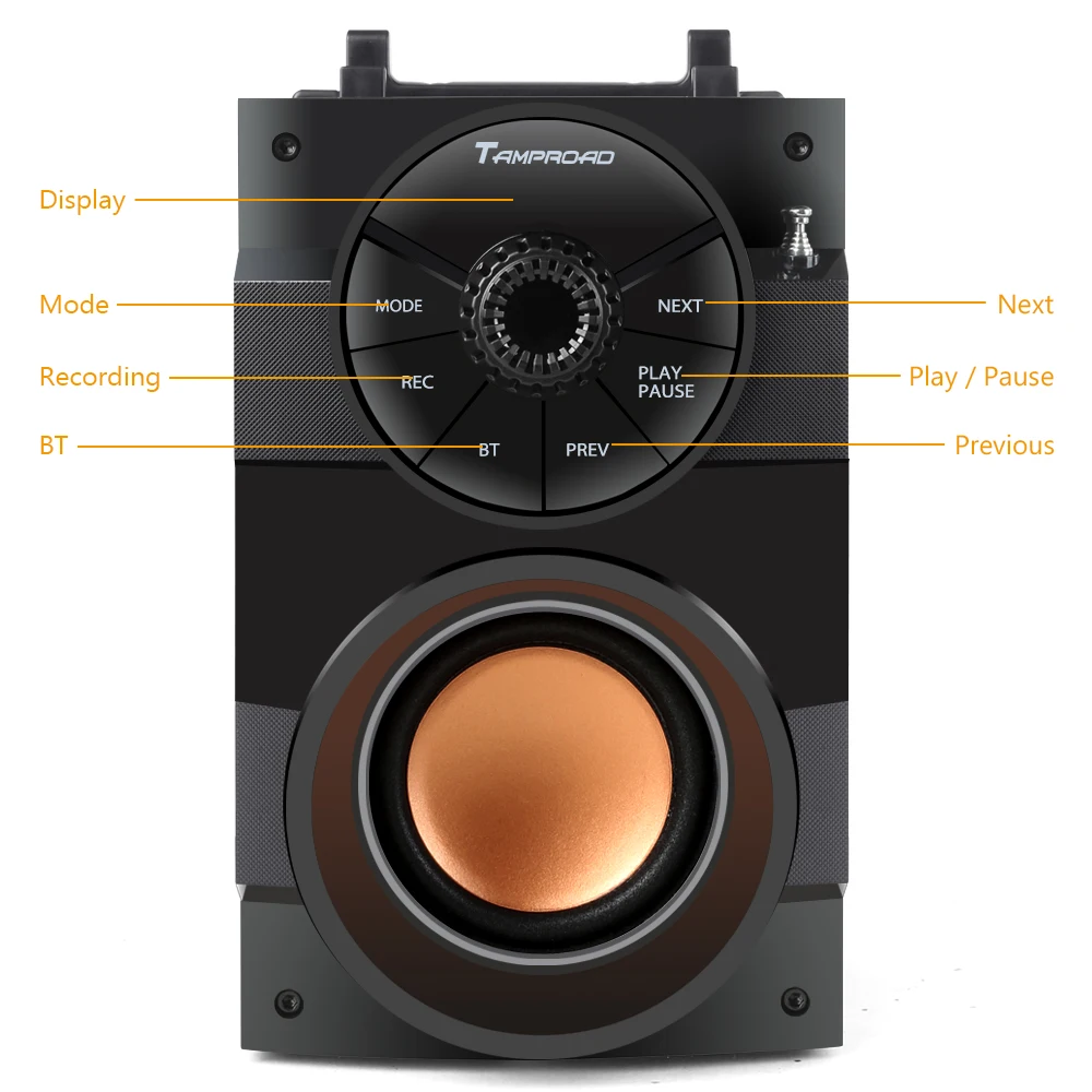Bluetooth-колонка TOPROAD с сабвуфером, FM-радио, AUX и пультом дистанционного управления