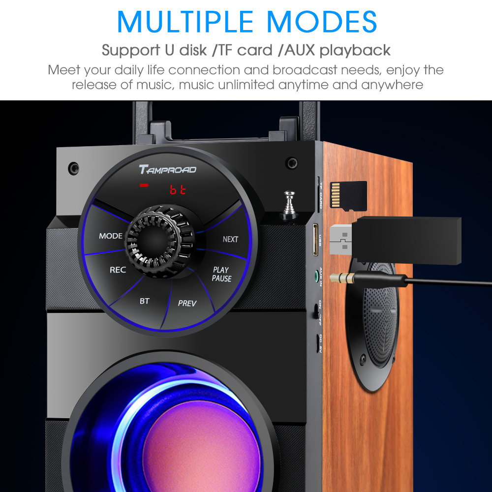 Беспроводная bluetooth-колонка TOPROAD, стерео сабвуфер, большие мощные динамики, громкоговоритель s, музыкальная звуковая шкатулка с пультом дистанционного управления, поддержка fm-радио, TF, AUX, USB, светодиодный светильник