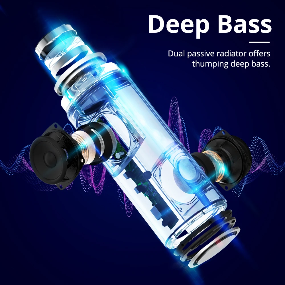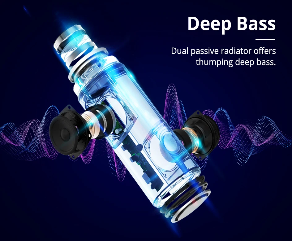 Двойной пассивный излучатель предлагает мощные глубокие басы, придавая сильный ритм вашей мелодии.