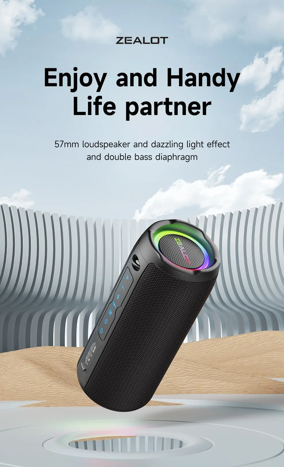 Портативные колонки Bluetooth Wireless устойчивы к брызгам, дождю, легким брызгам, поэтому их можно использовать в душевой, у бассейна или пляжа. Но не бросайте его прямо в воду. Кроме того, беспроводные колонки Zealot Bluetooth охватывают 12-месячный беспроблемный опыт покупки и нашу пожизненную помощь в обслуживании клиентов. Если вы делаете украшения на Хэллоуин, пусть музыка окружает вас, красочная ваша жизнь.
