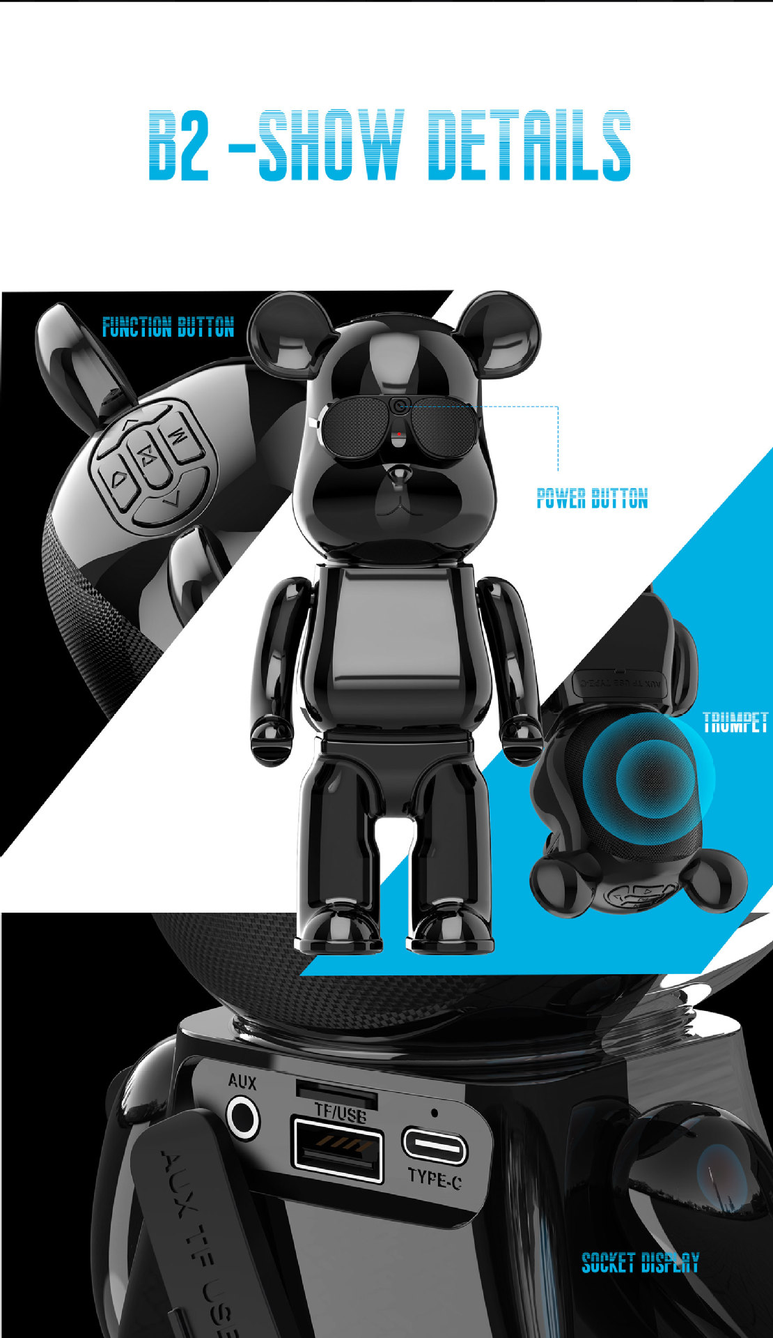 Bluetooth-Колонка жестокий медведь TWS, беспроводная Портативная колонка высокой мощности