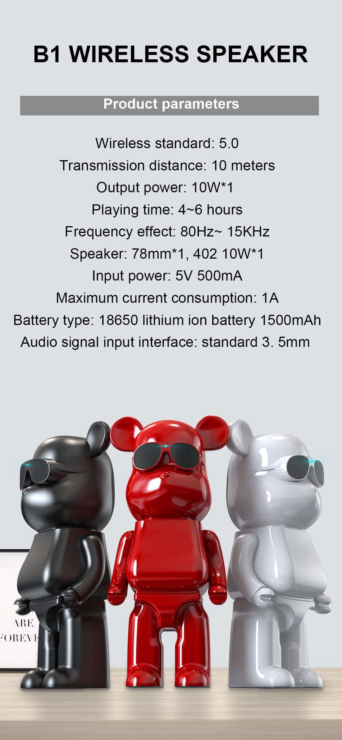 4. Output power: 5 W signal-to-noise ratio: 50dB, frequency range: 80-15KHZ,