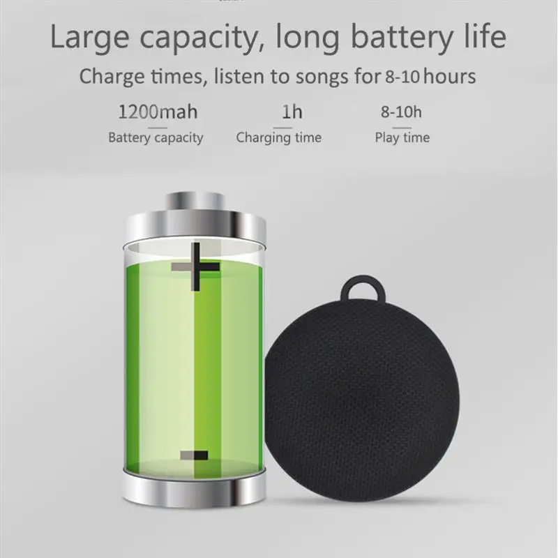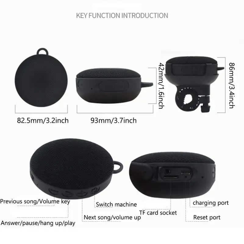 4. Портативный и компактный дизайн: внешний вид размер: 93*87*47 мм, этот мини-динамик bluetooth можно легко носить с собой. И с металлическим крючком удобнее носить с собой во время путешествий.