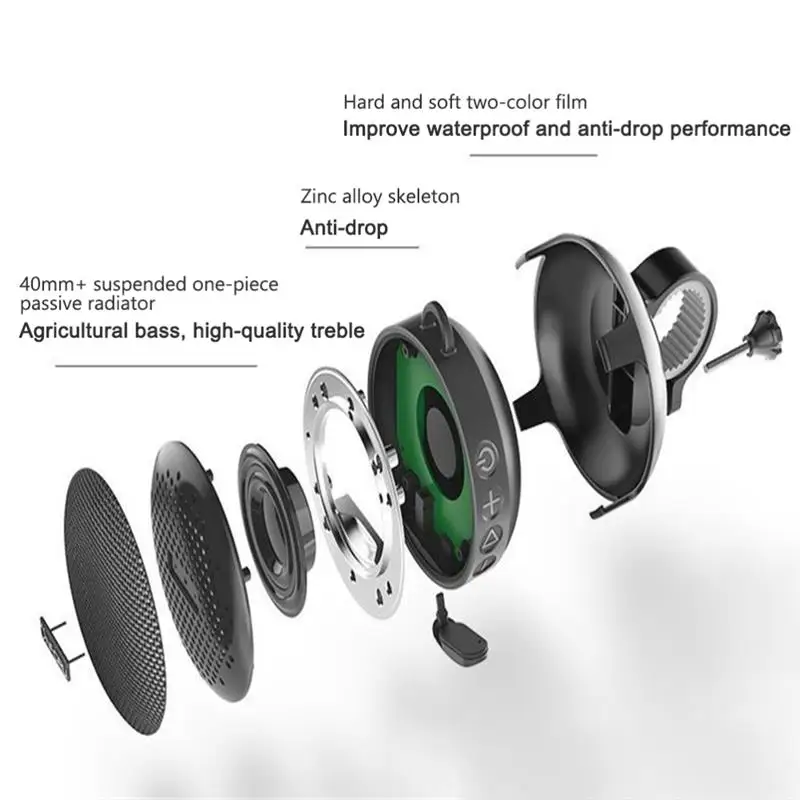 2. Водонепроницаемость IPX6: Водонепроницаемость IPX6, этот велосипедный динамик может даже погружаться в воду. Таким образом, это не повлияет на погоду даже в дикой природе, и это очень подходит для использования в помещении или на открытом воздухе, таких как верховая езда, пляжи, бассейны и ванные комнаты.