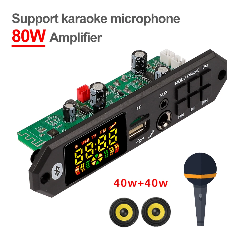 2*80 Вт 160 Вт усилитель Bluetooth MP3 декодер доска 12 В DIY MP3-плеер автомобильный FM-радио модуль TF USB микрофон Запись громкой связи