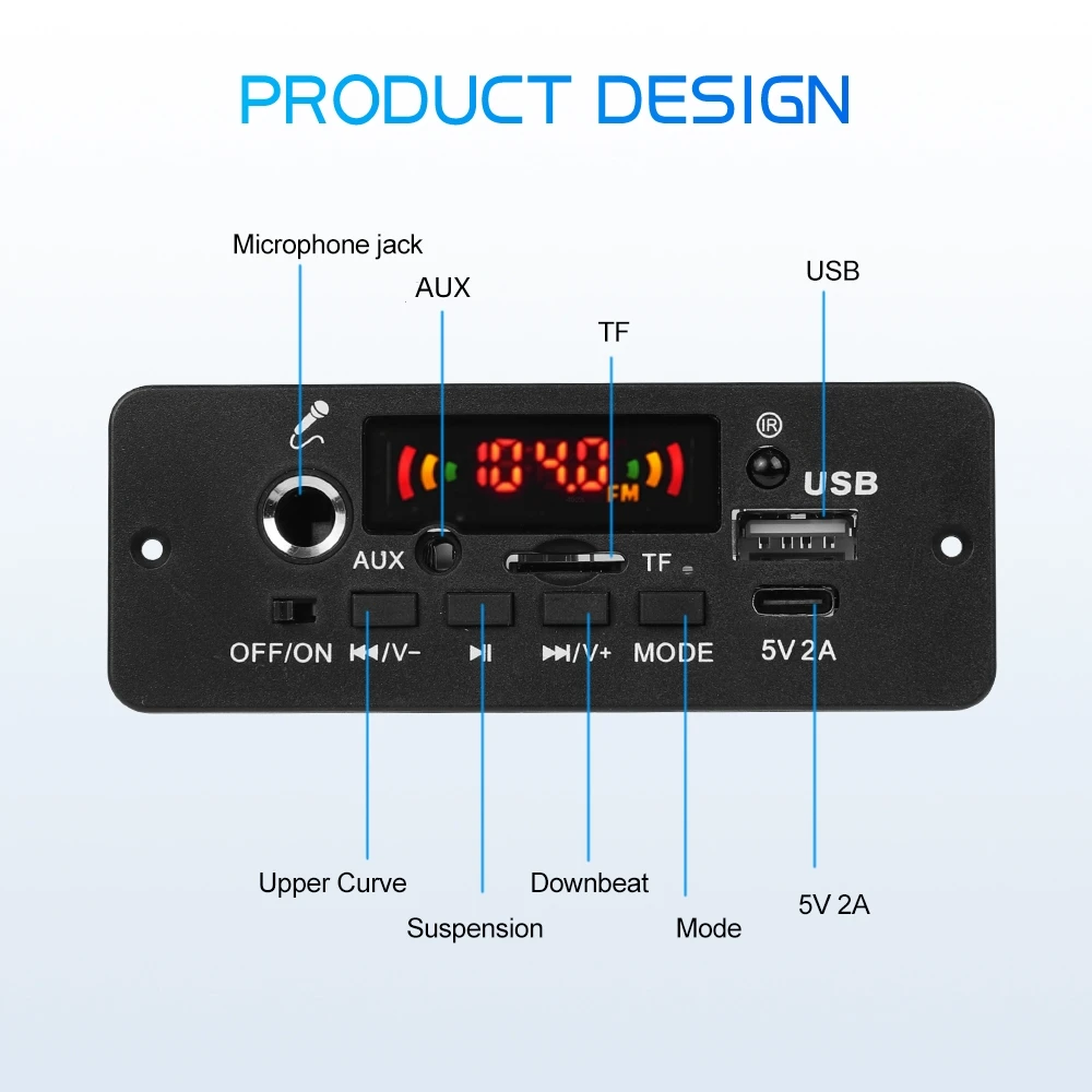 Bluetooth MP3 декодер плата 12 В DIY MP3 плеер автомобильный FM радио модуль TF USB микрофон