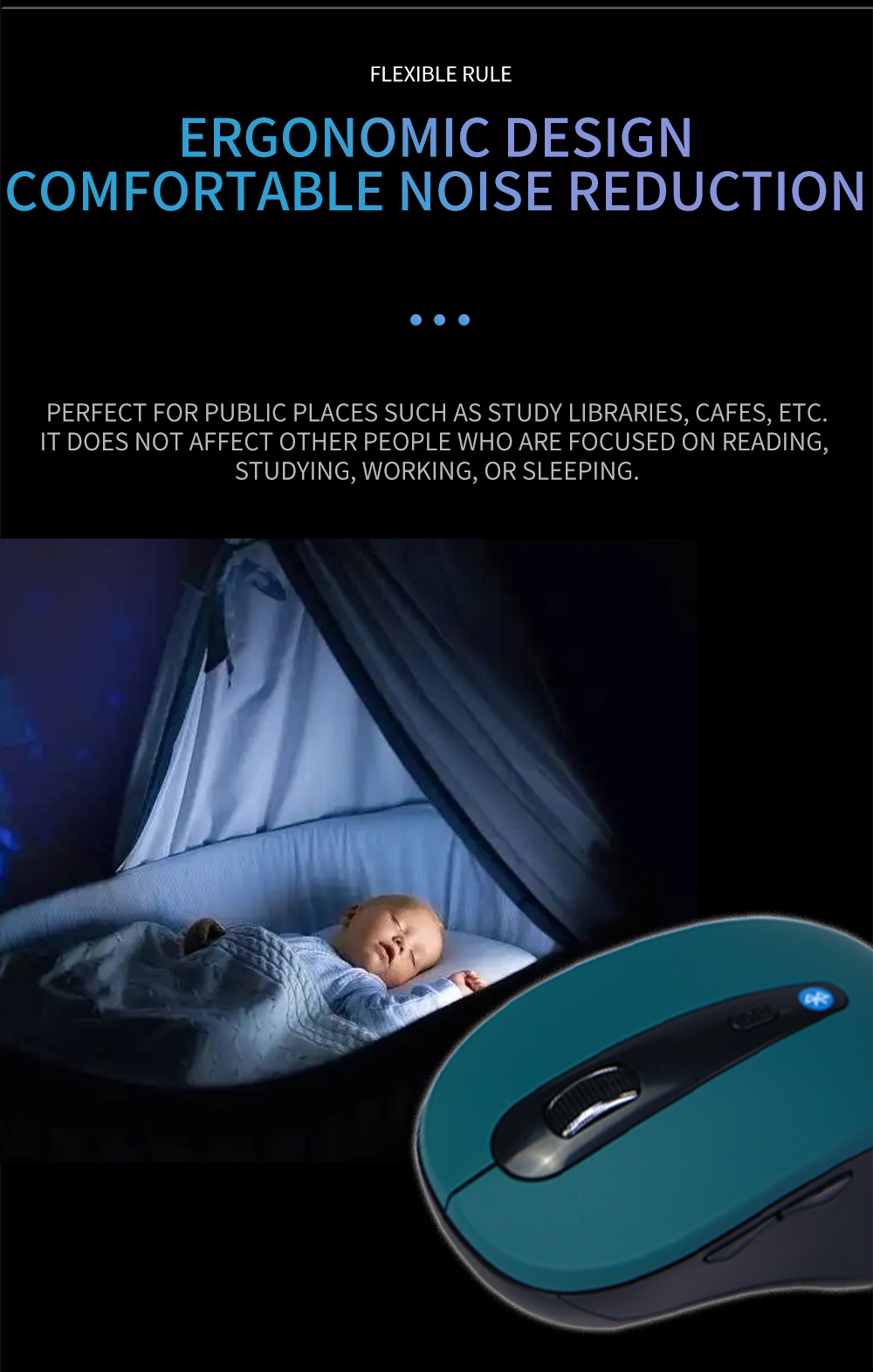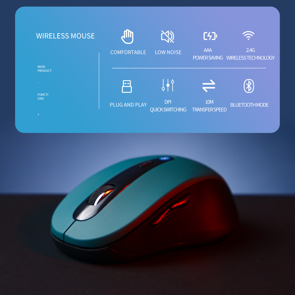 * Потребляемая мощность мыши имеет интеллектуальный дизайн, несколько режимов с низким энергопотреблением для экономии заряда батареи