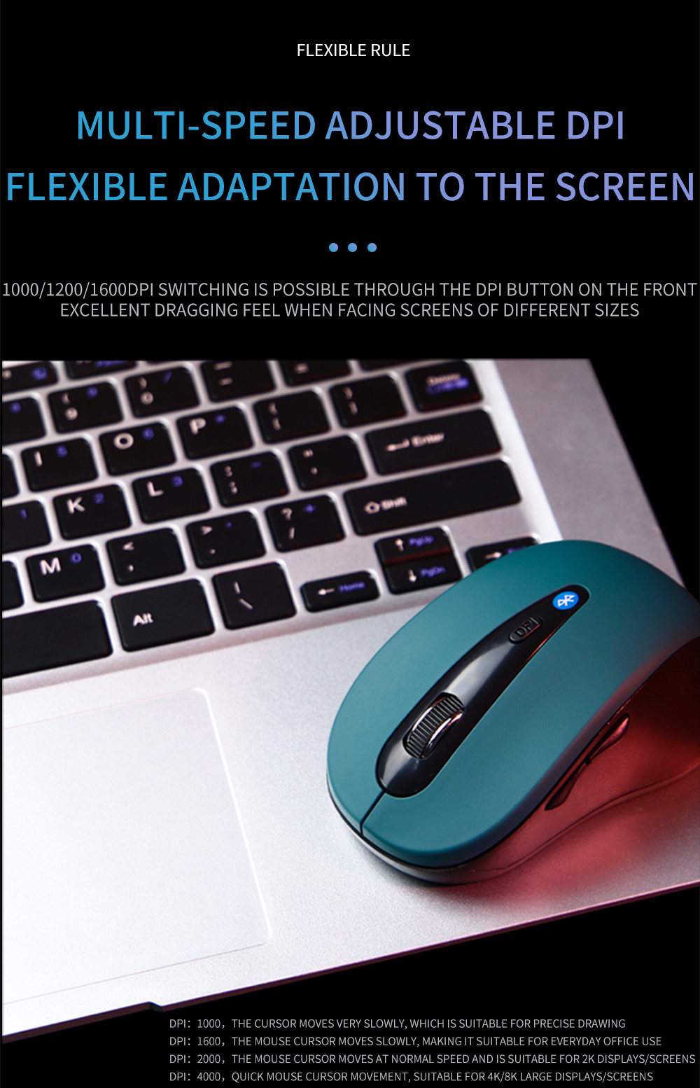 Регулируемый переключатель DPI: 1000-1200-1600DPI.