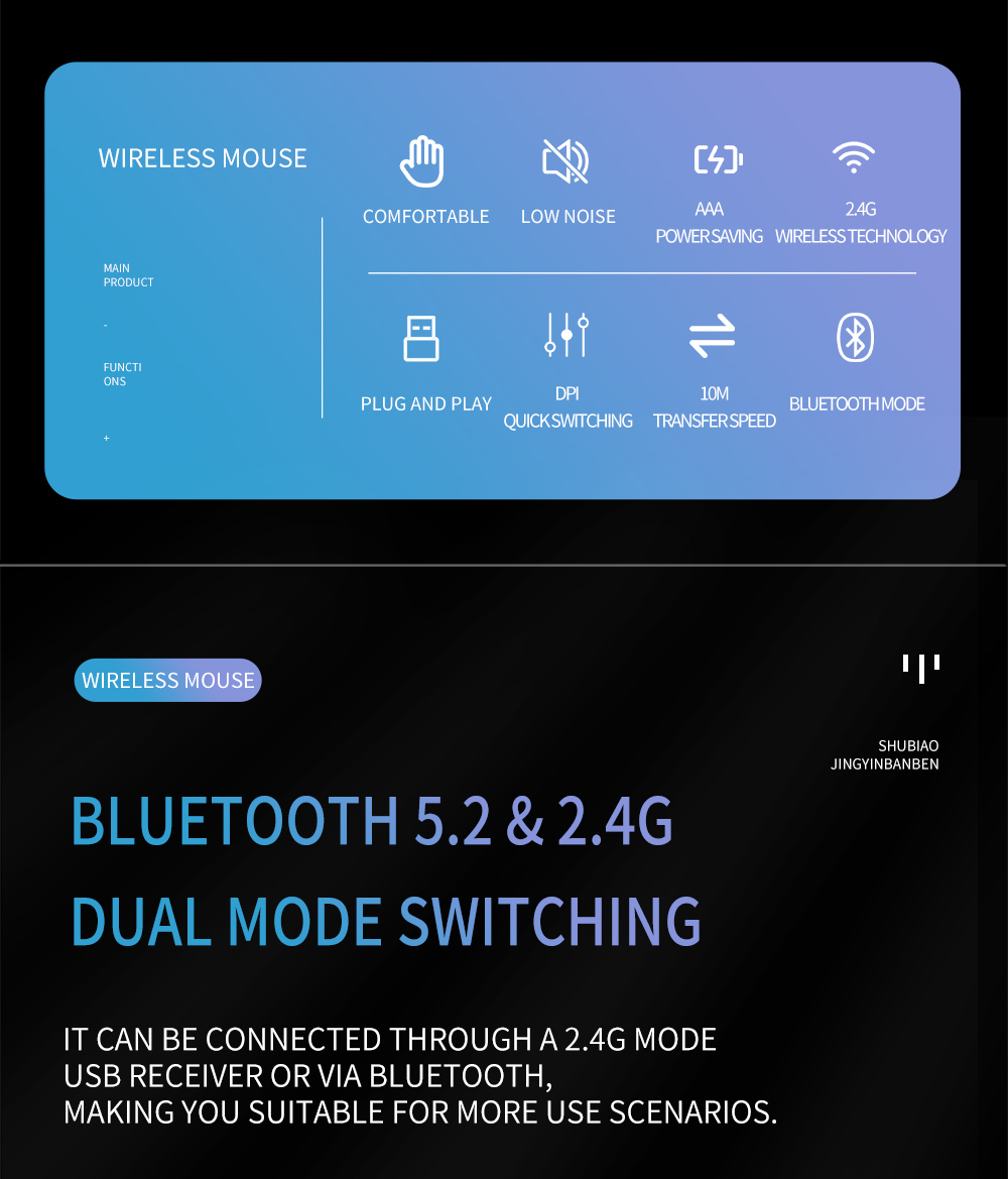 1 * Bluetooth 5,2 и 2,4 ГГц Двухрежимная беспроводная мышь.