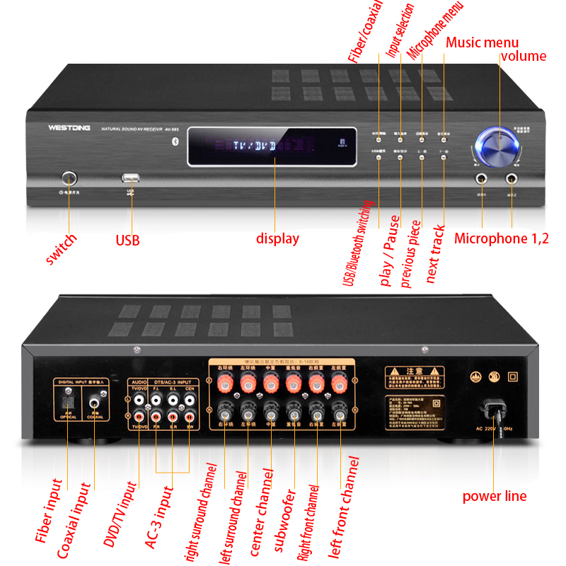 Bluetooth-усилитель 220 В, 650 Вт, 5,1 каналов, для домашнего кинотеатра