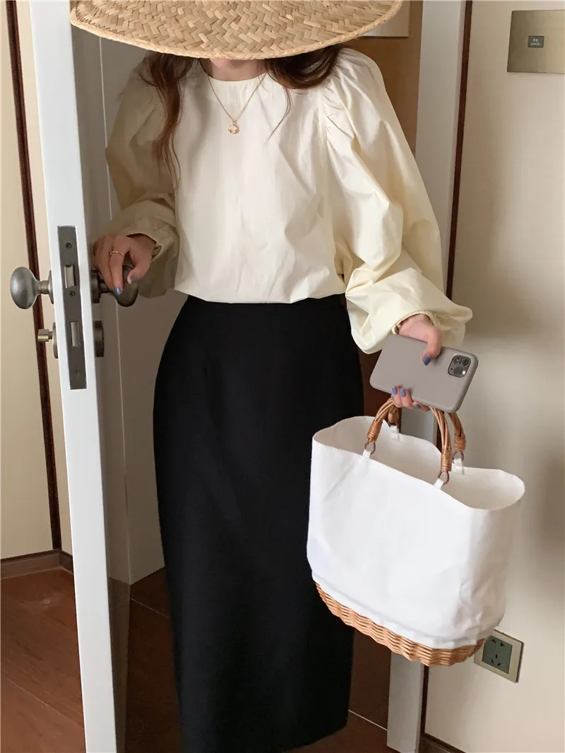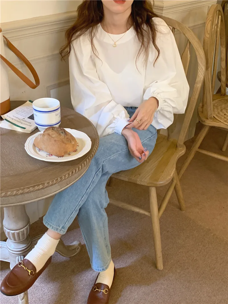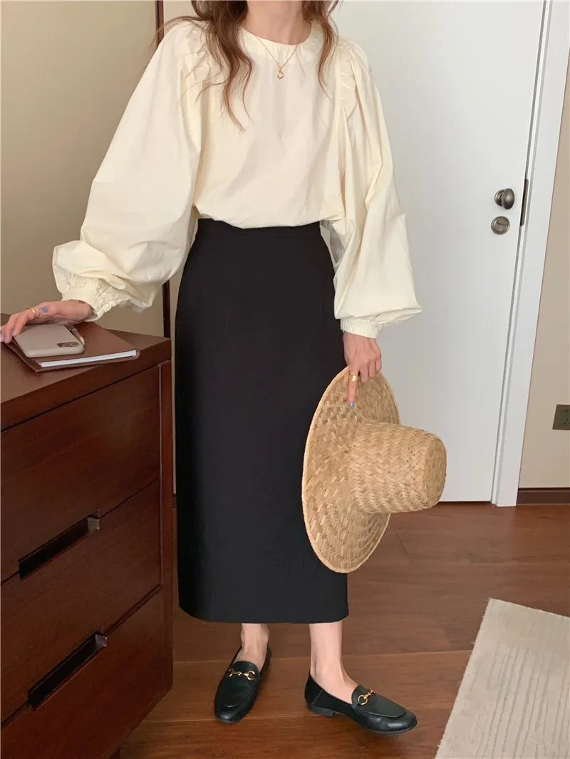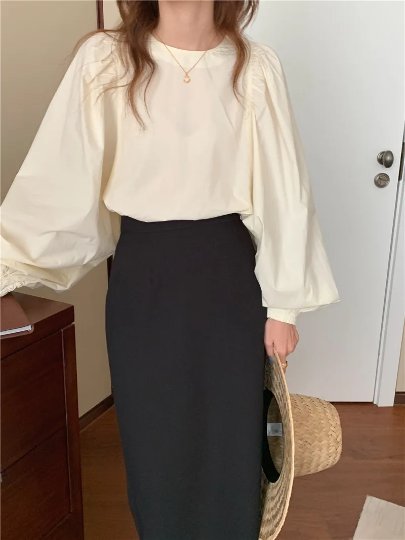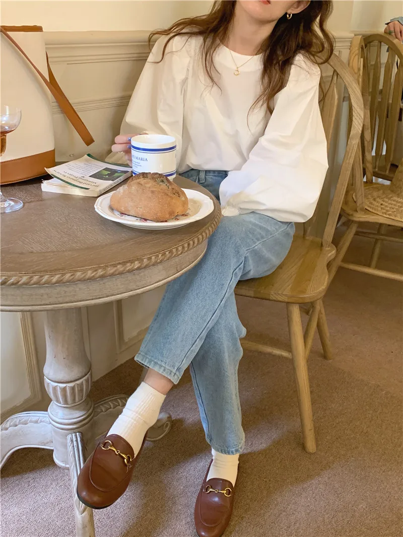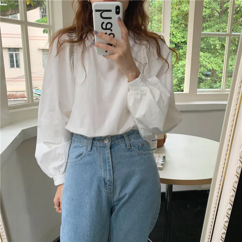 Блузка Alien Kitty Женская однотонная, модная универсальная рубашка в Корейском стиле, блузка с длинным рукавом, в стиле OL, на осень, 2021