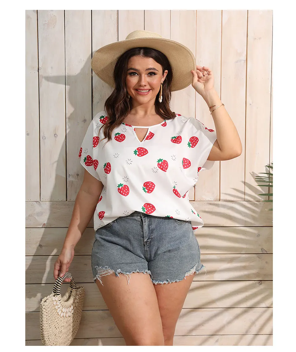 Блузка женская с коротким рукавом «летучая мышь» и принтом