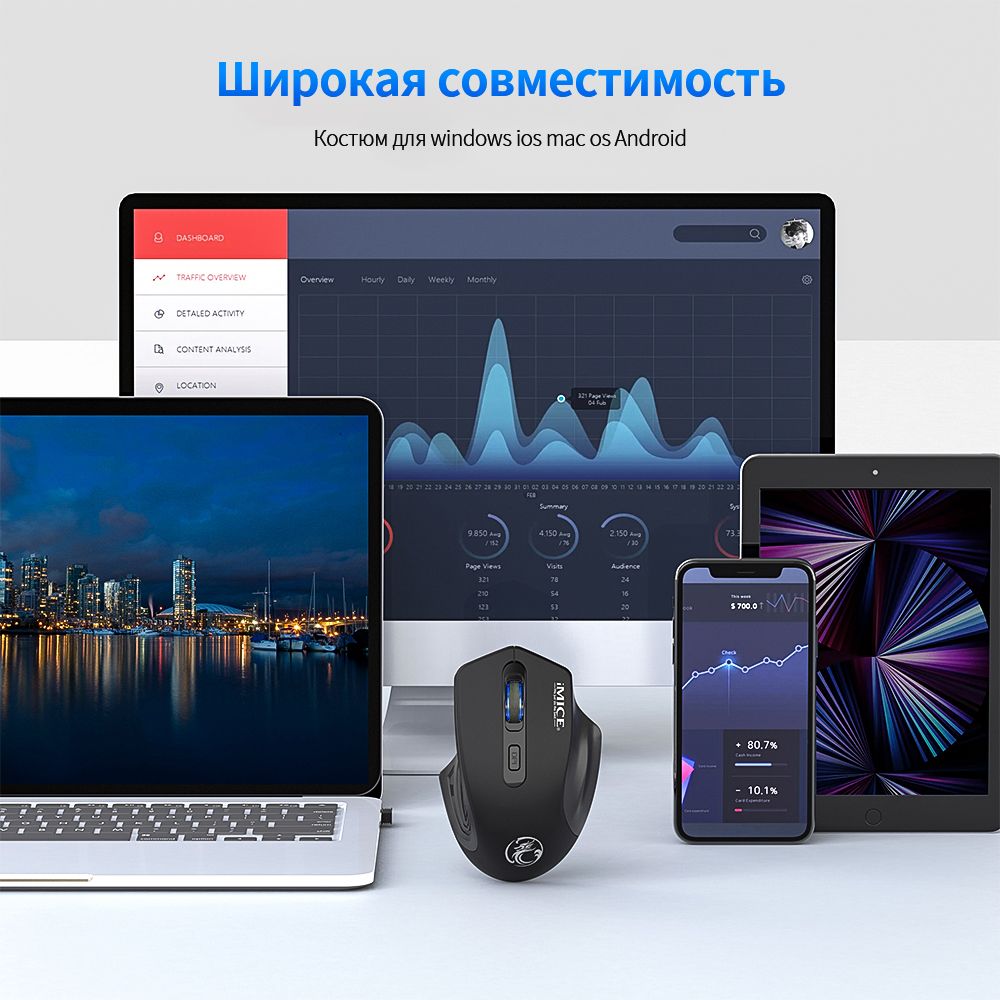 • Универсальная совместимостьМышь совместима с Chromeook / MacBook Pro / Macbook Air / Surface Pro /ноутбуком / планшетом. Режим Bluetooth совместим с Win8 / 10/ 11, iPad / iPhone iOS 14 и выше и системой Mac OS 10.10 / Android 5.0 или выше.