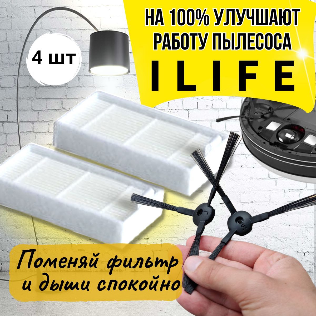 Боковые щетки и складчатый HEPA фильтр. Комплект аксессуаров для робота пылесоса iLife V50 и других моделей V