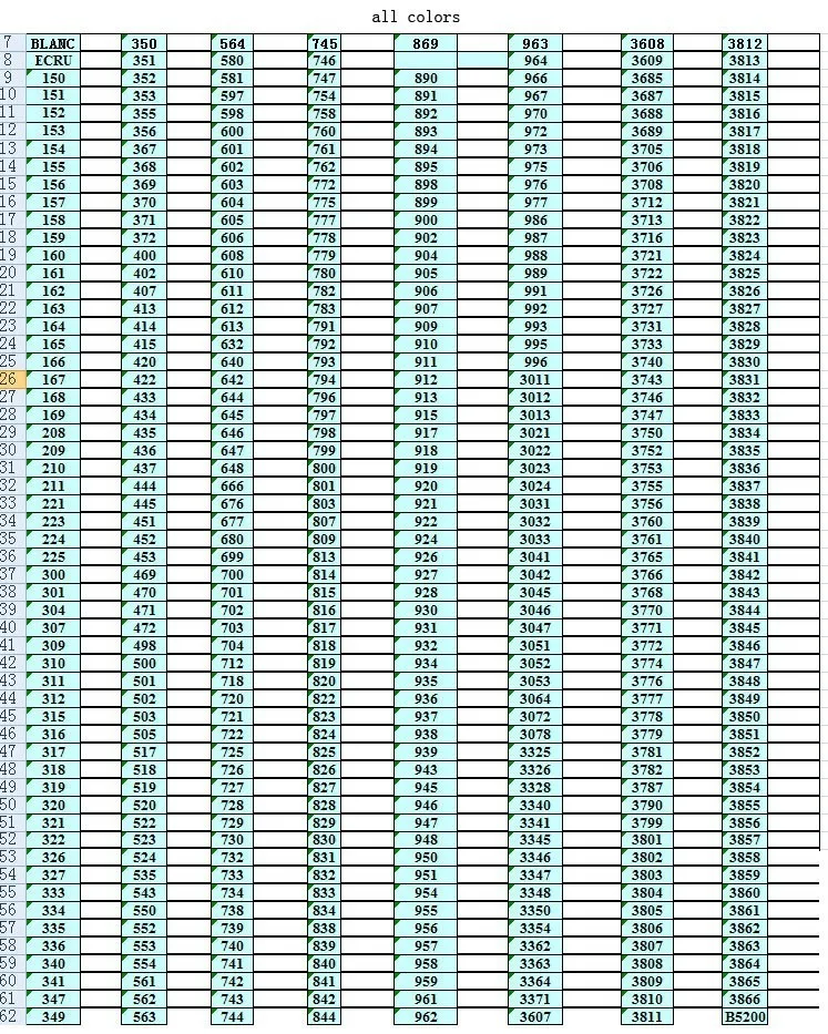Всего 447 цветов для каждого цвета длиной 8 метров, 6 нитей.