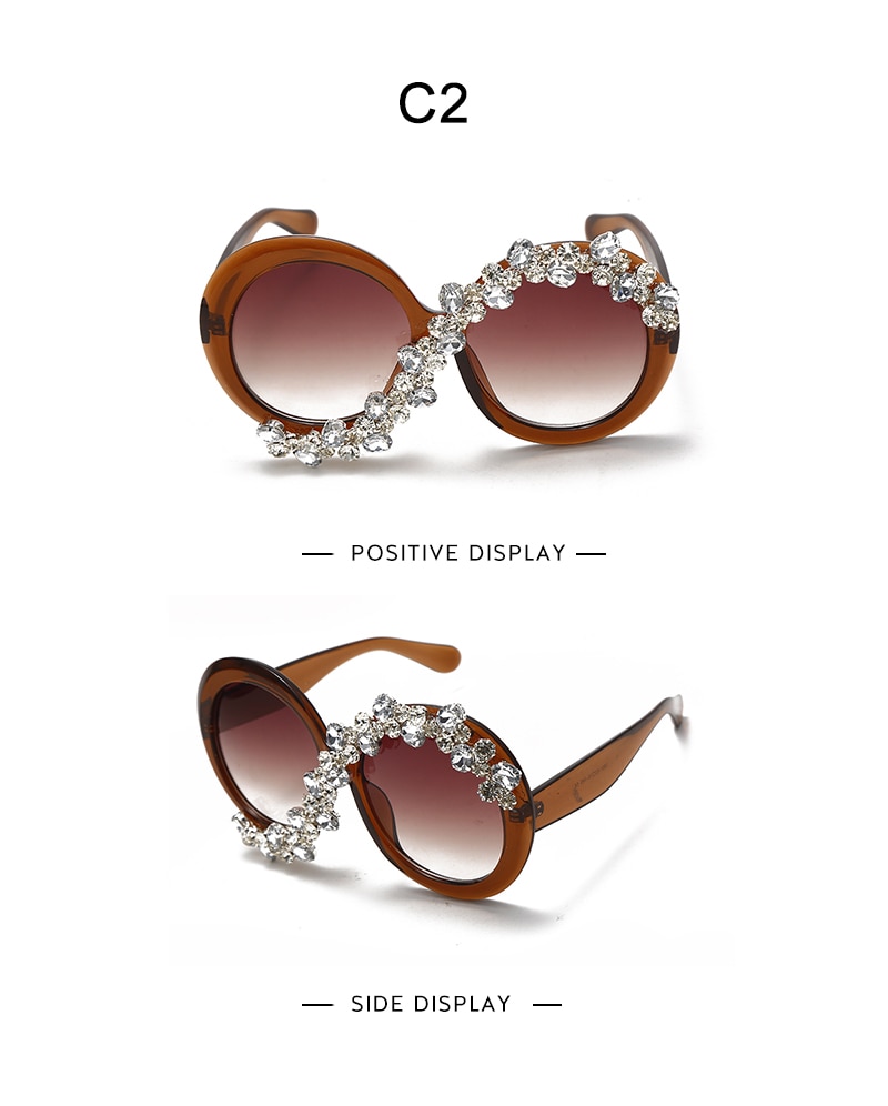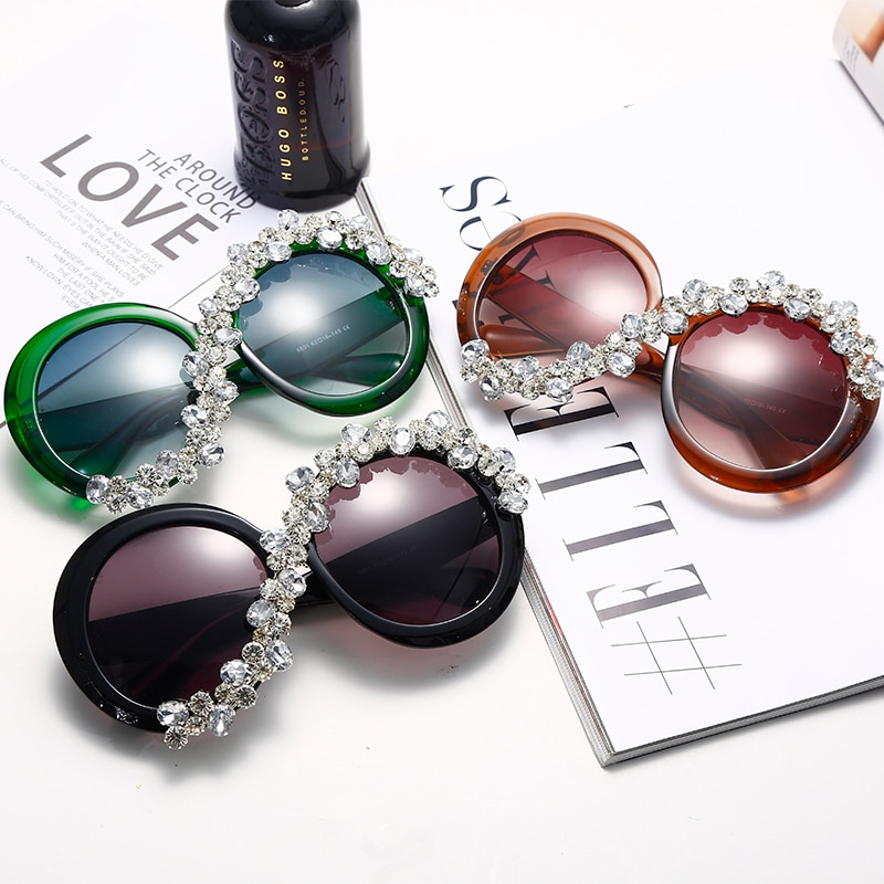 Большие Круглые Солнцезащитные очки женские Стразы со стразами Солнцезащитные очки Мужские Роскошные брендовые дизайнерские очки винтажные очки