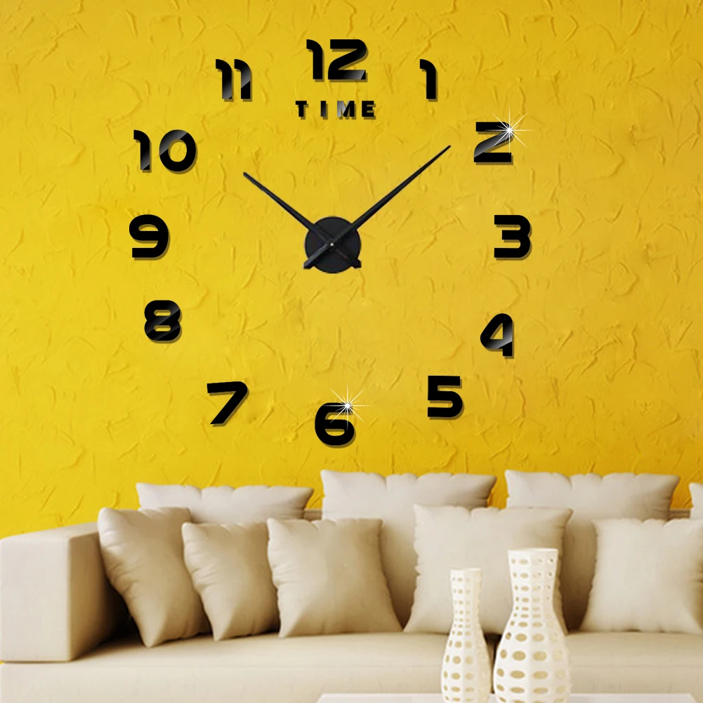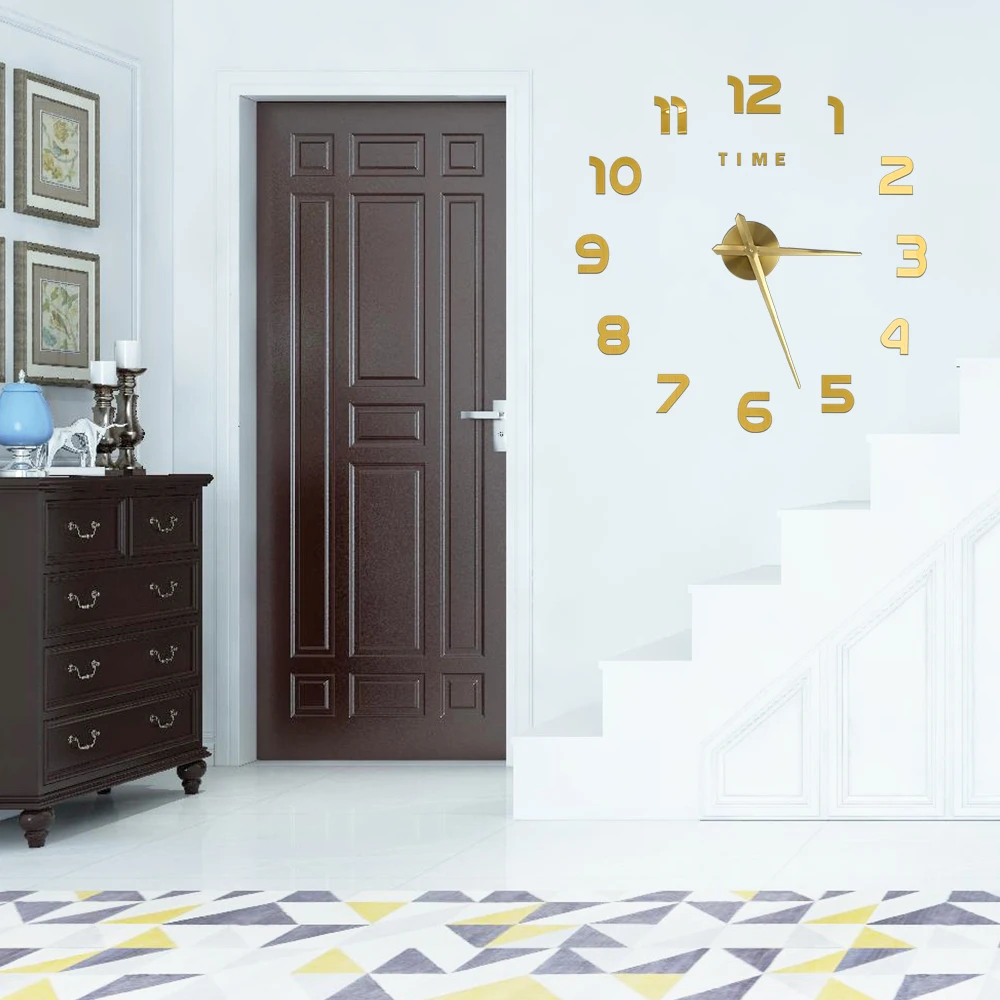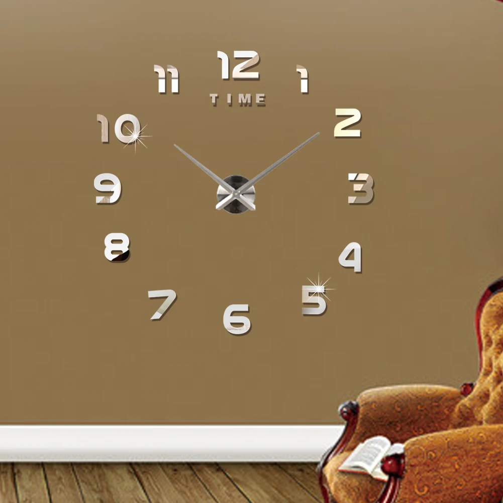 Большие настенные часы 3D, домашний декор, настенные кварцевые самоклеящиеся часы с зеркальными акриловыми наклейками «сделай сам», с иглами