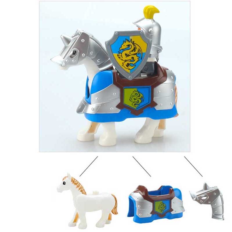Большие строительные блоки, военные строительные блоки, рандомная сборка, Броня лошади, меч, фитинги, флаг, броня, сборные игрушки для детей