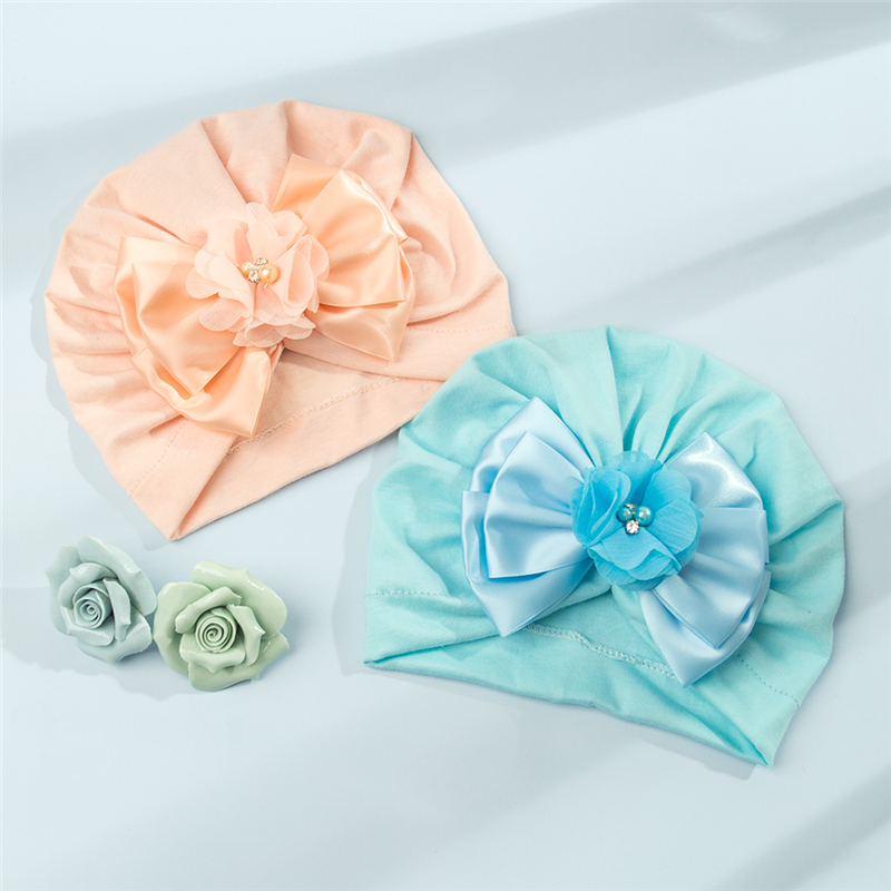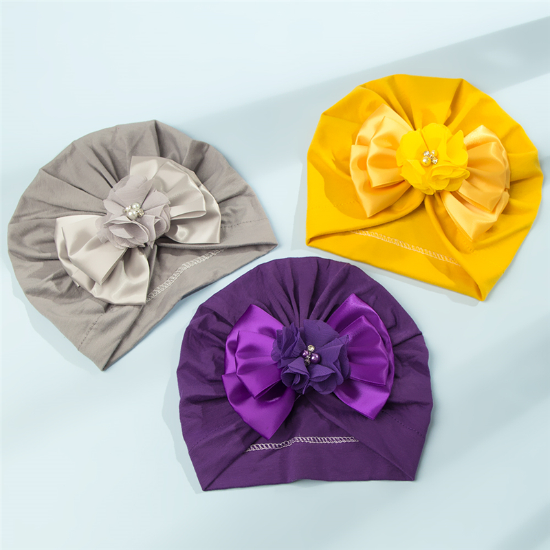 _ Большой бант-тюрбан детские шляпы кепки стразы, головные повязки для новорожденных, детей, уши, Обложка с бантом для малышей KBH74
