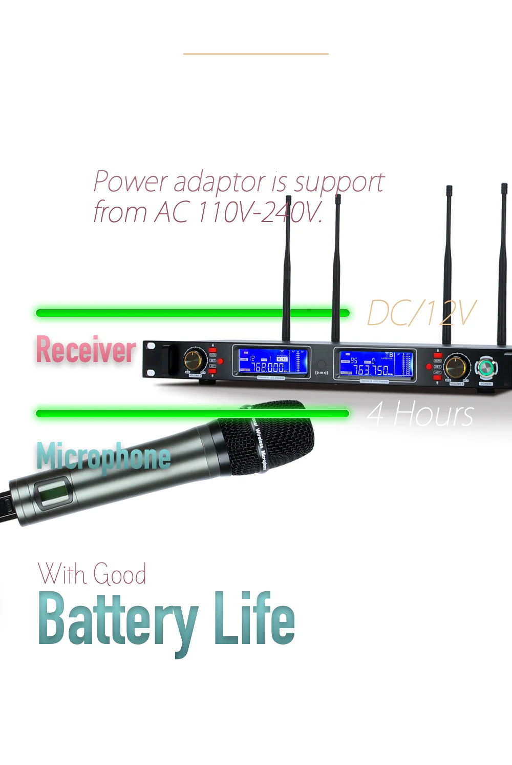 СОсобенности:RU-S16Будет автоматически искать сигнал свободных каналов, чтобы избежать каналов помех. В микрофонах также используется новая структура схем, чтобы значительно увеличить расстояние приема голоса. RU-S16 подходит для оперы, встречи, презентации, выступления, выступления на сцене и так далее. Вы по достоинству оцените это профессия.