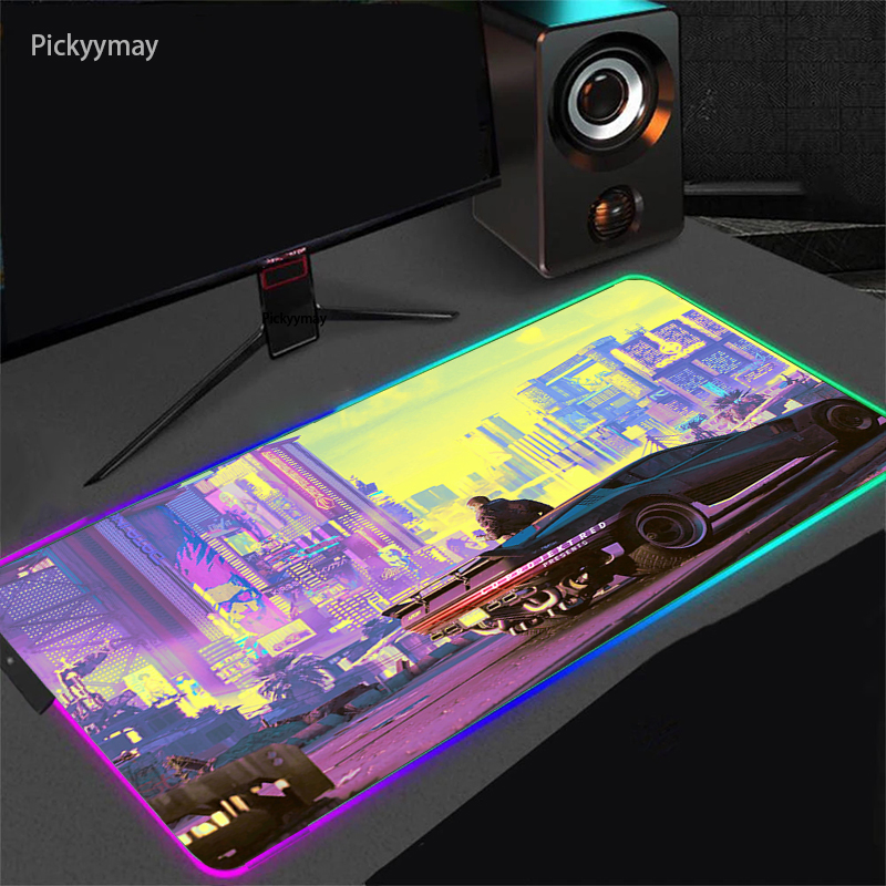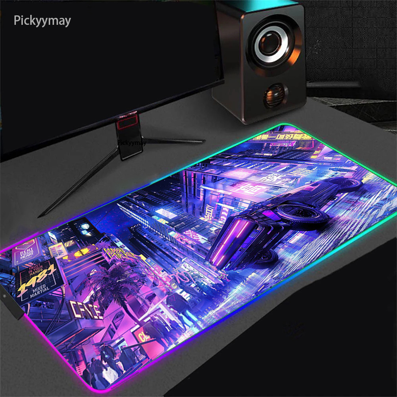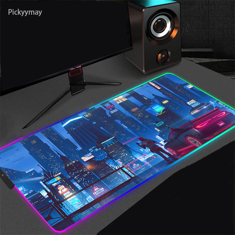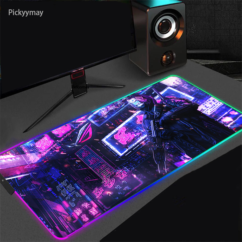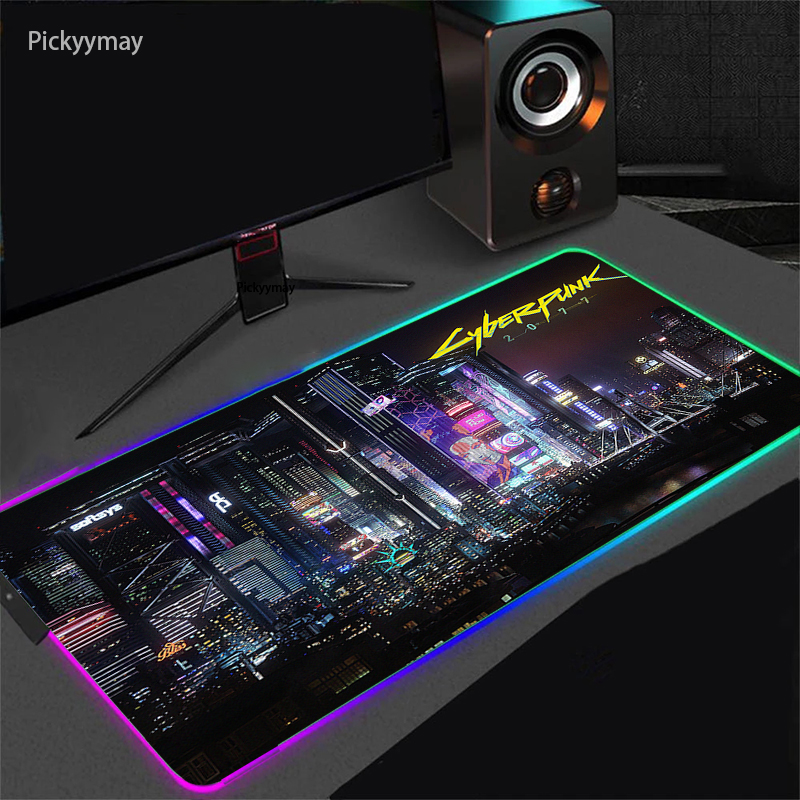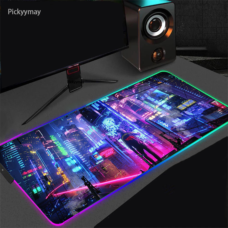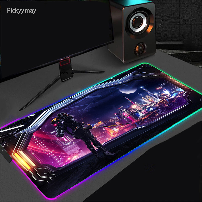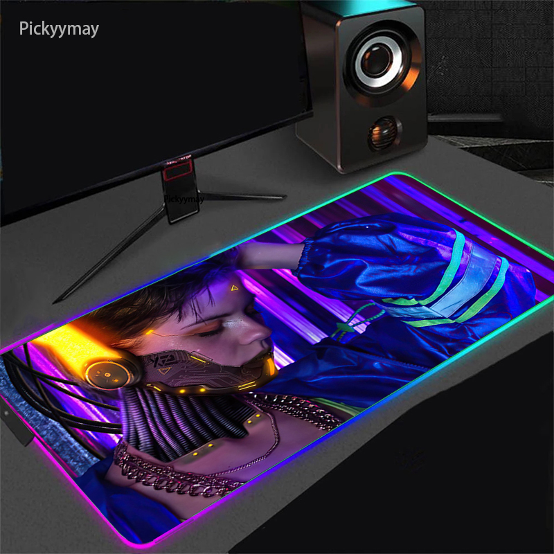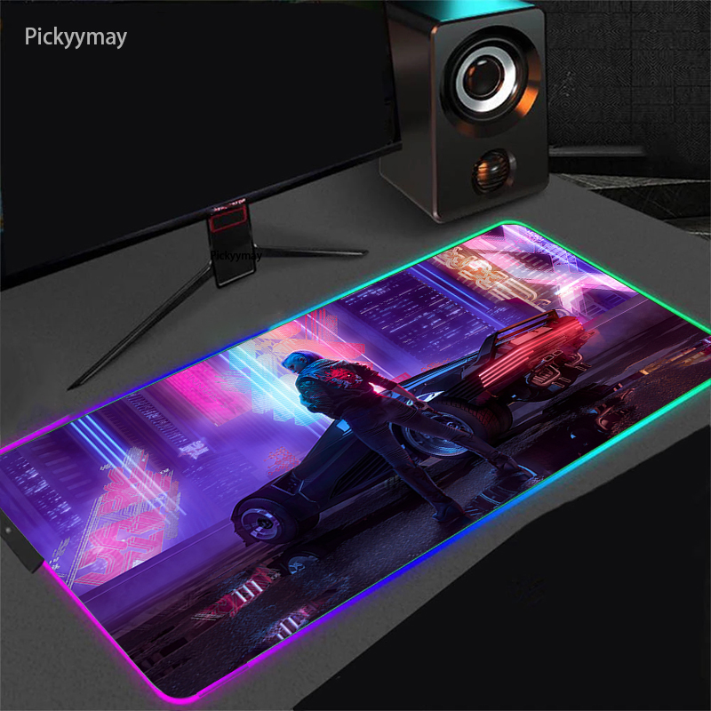 RGB большой игровой коврик для мыши Cyberpunk коврик для мыши с подсветкой светодиодный резиновый Настольный игровой коврик компьютерная клавиатура ноутбук Настольный коврик