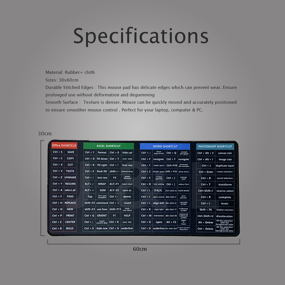Большой коврик для мыши, быстрые клавиши, коврик для мыши, фотошоп, офис, Linux, команды, питон, Java, языки языков, Js, финансовый анализ, блокировка края 60*30 см