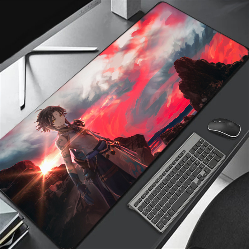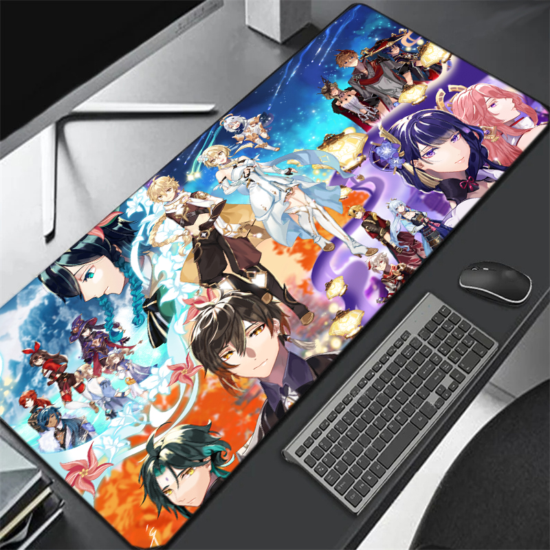 Большой коврик для мыши Genshin Impact 90x40 см, игровые аксессуары, Коврик Для Мыши для ПК, ноутбука, геймера, аниме нескользящий коврик для мыши для ноутбука