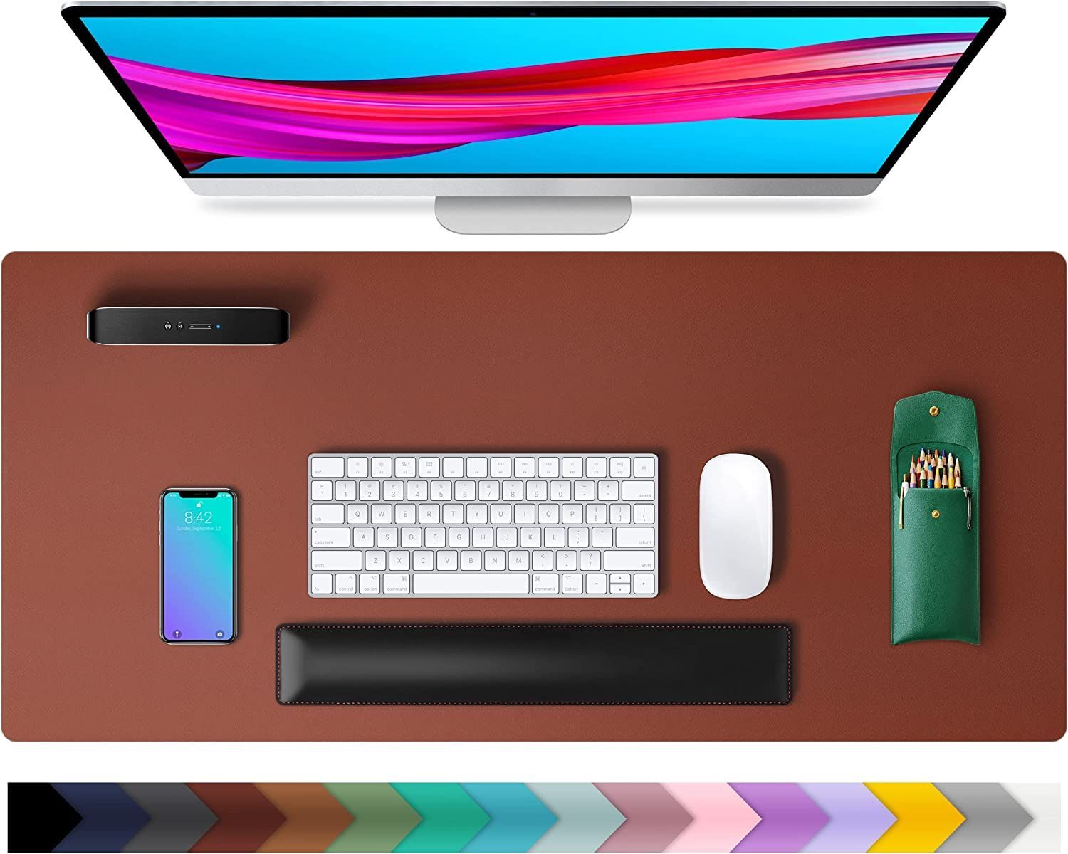 Пожалуйста, замените этот текст Вашим собственным. Специальная нескользящая подложкаСпециальная конструкция из замшевой кожи для задней стороны, которая увеличивает сопротивление трению о рабочий стол и не скользит. Сопротивление трению на 70% выше, чем у двусторонней кожи.Пожалуйста, замените этот текст Вашим собственным. Подходит для письмаЭтот настольный коврик с удобной и гладкой поверхностью можно использовать как коврик для мыши и блокнот для письма. Он обеспечивает поддержку запястья во время набора текста или работы с мышью и не сдвинется с места, если его положить на стол, благодаря нескользящей подложке.Универсальный размерУниверсальный коврик для стола: 40 x 80 сантиметров. Такой размер достаточно велик, чтобы вместить ноутбук, мышь и клавиатуру. Его удобная и гладкая поверхность может использоваться как коврик для мыши, настольный коврик, настольные промокашки и блокнот для письма.Высокое качествоМы стремимся предоставлять нашим клиентам высококачественную продукцию и превосходное обслуживание. Хороший выбор подарка для вашей семьи, друзей и себя.