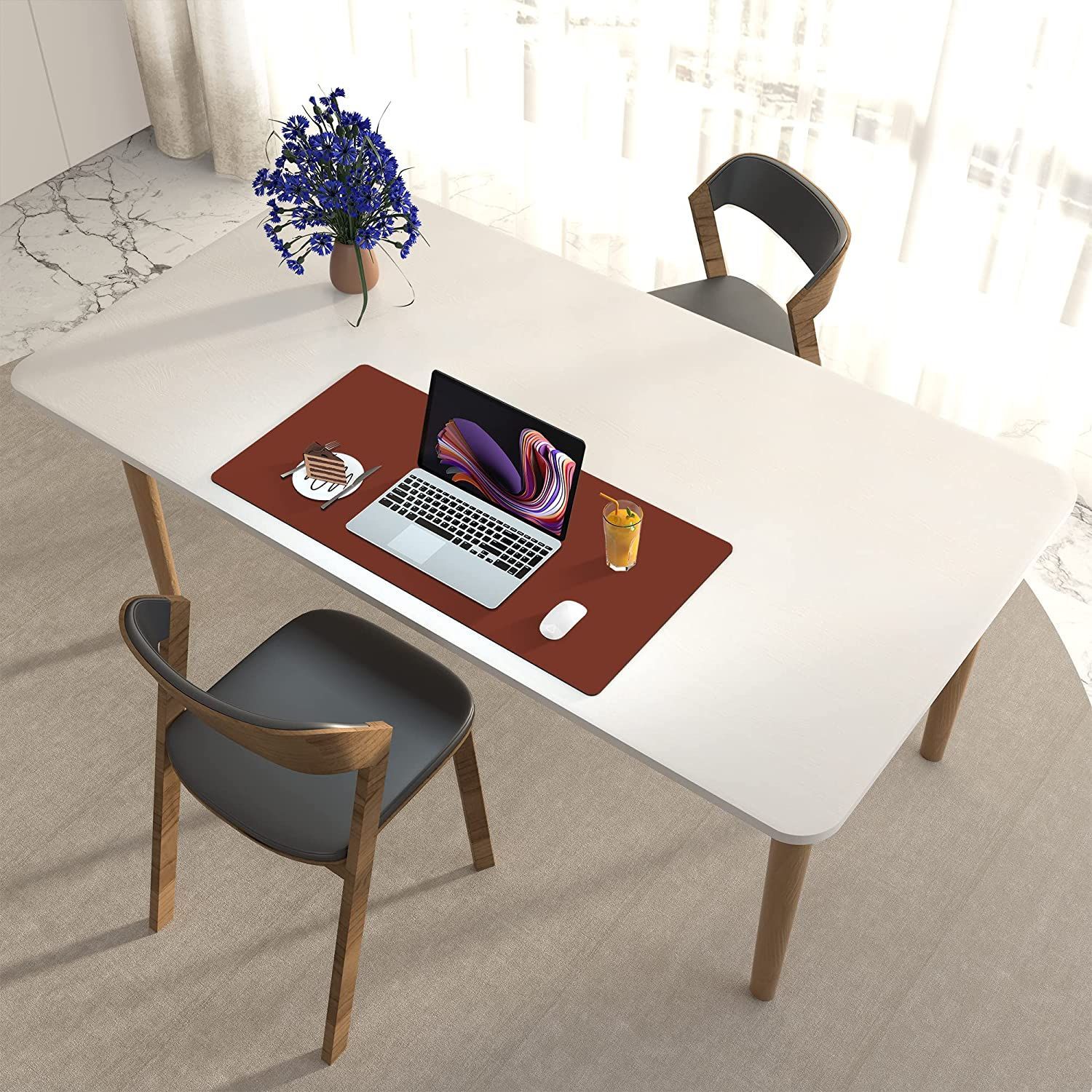Большой коврик для мыши и клавиатуры на рабочий стол. Настольный, водонепроницаемый коврик для офиса и дома. Защитный коврик из эко-кожи для стола 40 см х 80 см, коричнево-красный