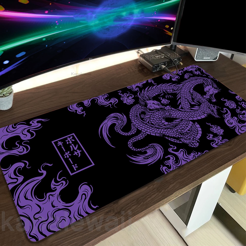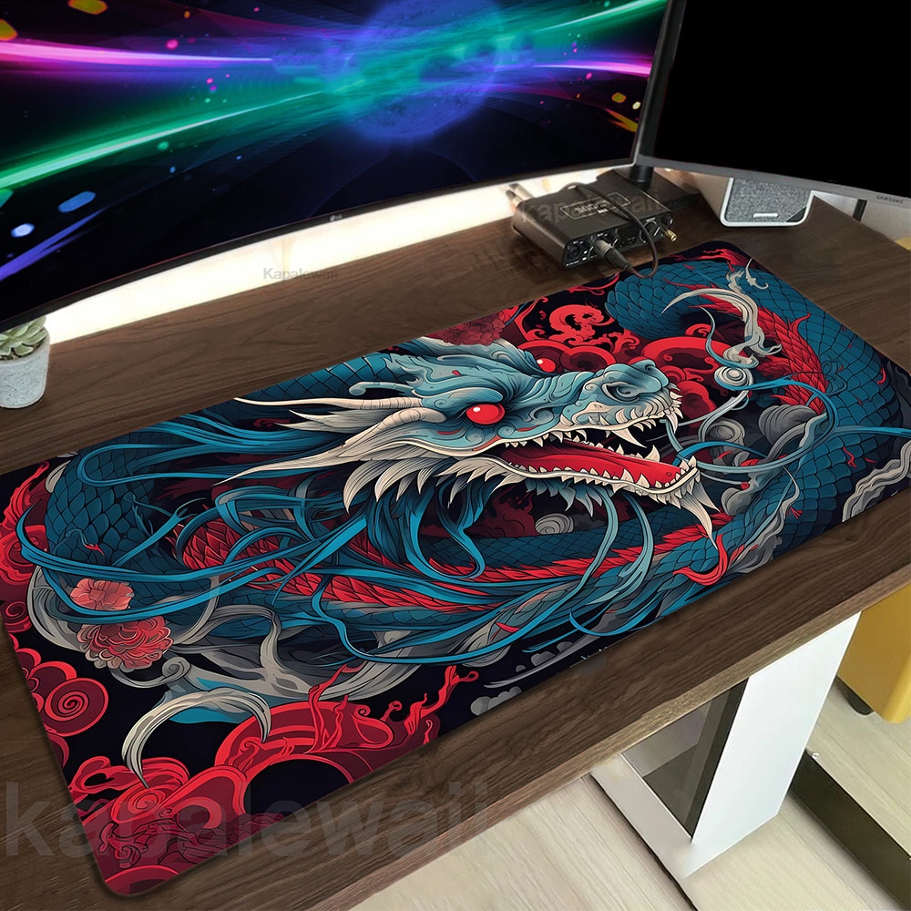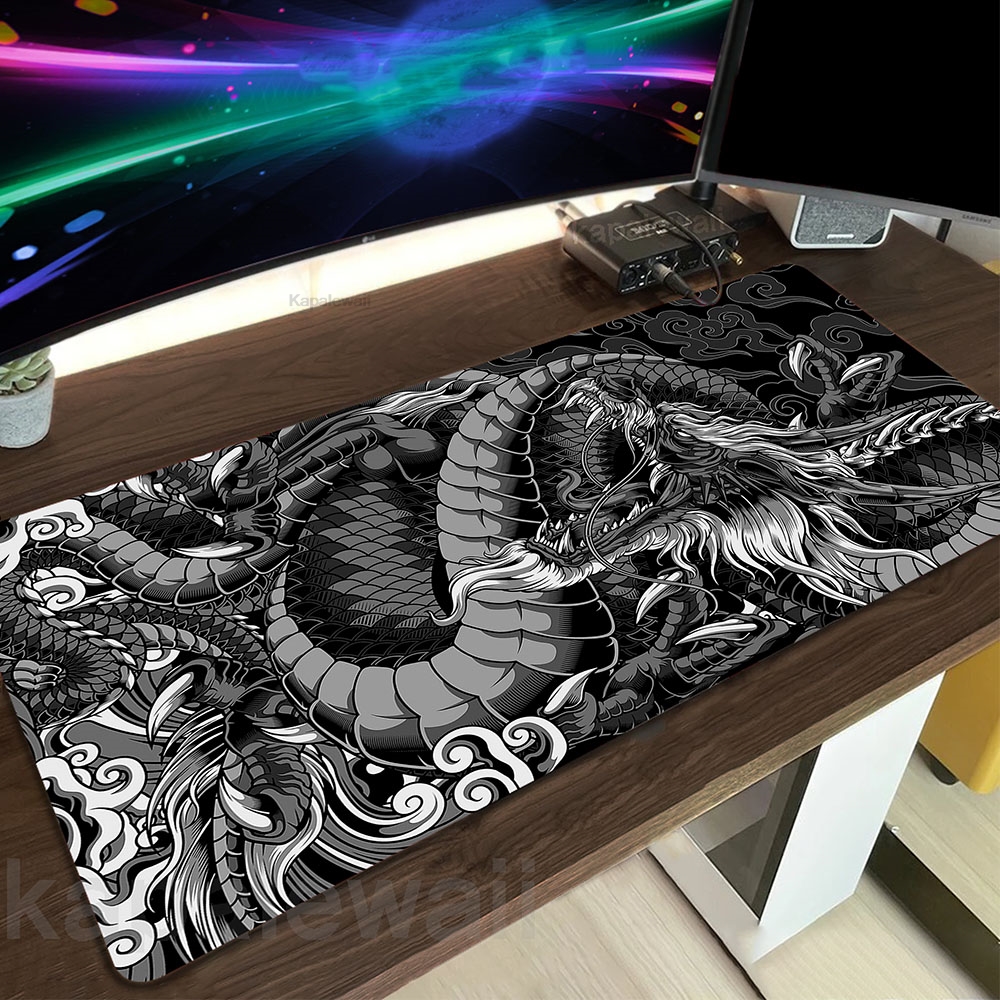 Большой коврик для мыши в виде дракона, коврик для мыши для скоростных игр в японском стиле Koi XXL, коврик для мыши, коврик для игрового стола, коврик для клавиатуры, черный и белый коврик для стола