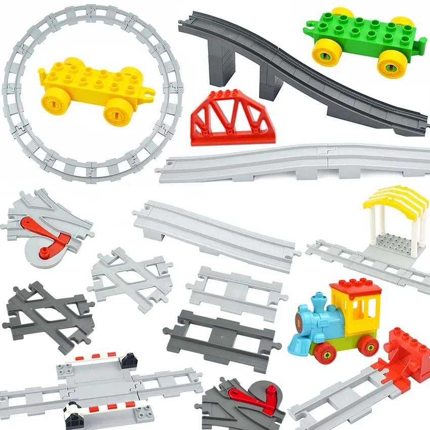 Большой размер, трек, железнодорожный кирпич, транспортный поезд, автомобильный аксессуар, переключатель, прямой изогнутый трек, рельсовый строительный блок, совместимый с Duploes