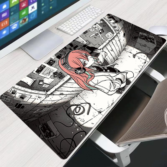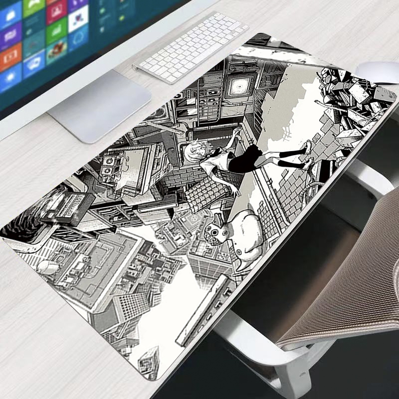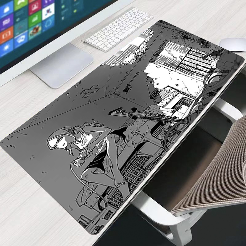 Черно-белый аниме девушка большой коврик для мыши резиновый фиксатор края игровой коврик для мыши Компьютерная игра коврик для мыши офисные комиксы Настольный коврик