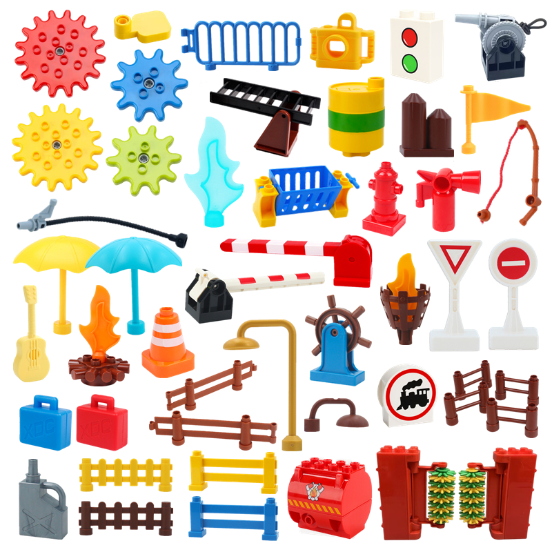 Большой строительный блок Монтессори Gear, городская пожарная станция, забор, совместимый с Duplo, детский подарок, сборная игрушка