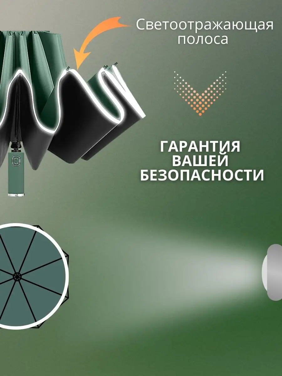 Описание: Зонт со светоотражателем - это необходимый аксессуар в каждом доме. Универсальный размер подойдет всем членам семьи - папе маме, детям подросткам, и даже бабушке с дедушкой. Благодаря удобному реверсивному открытию закрытию кнопкой просто пользоваться одной рукой. Крепкие спицы антиветер Wind Proof, прочное водонепроницаемое покрытие, защита от УФ лучей позволяют легко двигаться к своей цели под ливнем, ветром и солнцем. Женские и мужские складные зонты со светоотражающим эффектом, в базовых однотонных ярких расцветках не оставит вас незамеченными вечерами на улице. Еще одна отличительная особенность дорожного механизма - обратное сложение. Уникальность в том, что при такой системе под какой сильный дождь вы бы не попали, капли будут оставаться на внешней стороне, вы не намочите одежду, свои рюкзак или сумку, сможете спокойно сесть в автомобиль, не портя сидение в салоне машины. Автомат, на контрасте с полуавтоматом и механикой более удобен. Большой купол прекрасен для семейных прогулок взрослых в весенне летний сезон, или осенью, когда слякоть.Сделайте подарок своим близким, например, жене или мужу. Сестра или же коллега также будут рады такому сюрпризу.