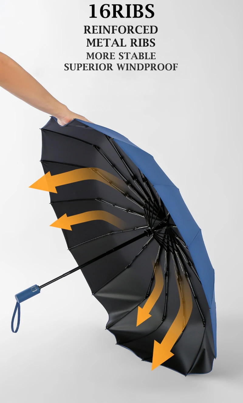 Большой зонтик с 16 ребрами, прочный полностью автоматический зонтик, мужской, женский, роскошный, деловой, мужской, ветрозащитный, 3 складных зонтика