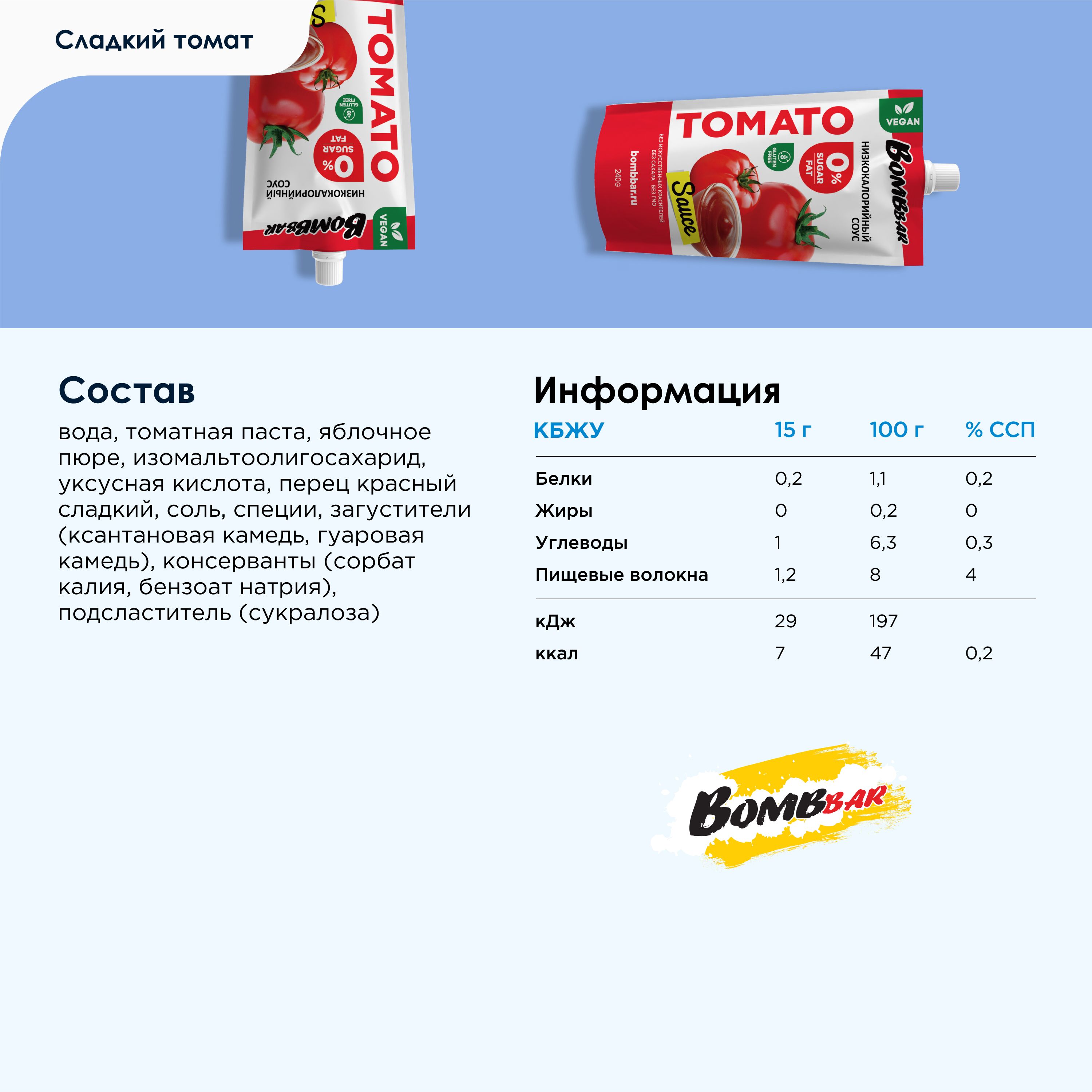 Описание: Низкокалорийный соус "Томатный" без сахара от Bombbar