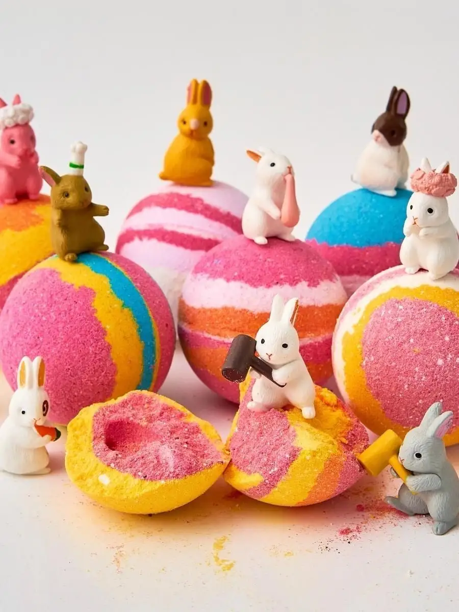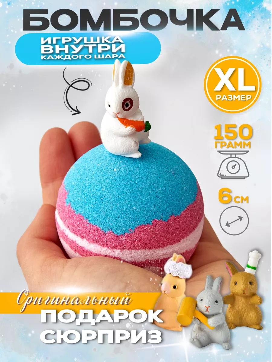 Количество предметов в упаковке бомбочка (рандомный цвет) - 1 шт; кролик (внутри шарика) - 1 шт; набор для ванны