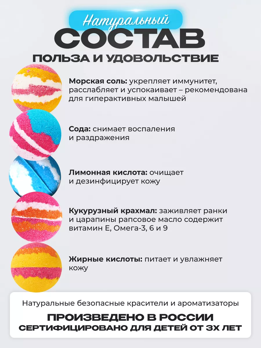 Артикул 96342817 Состав лимонная кислота; сода пищевая; рапсовое масло; глицерин; кукурузный крахмал; отдушка ароматическая; пигмент косметический; морская соль
