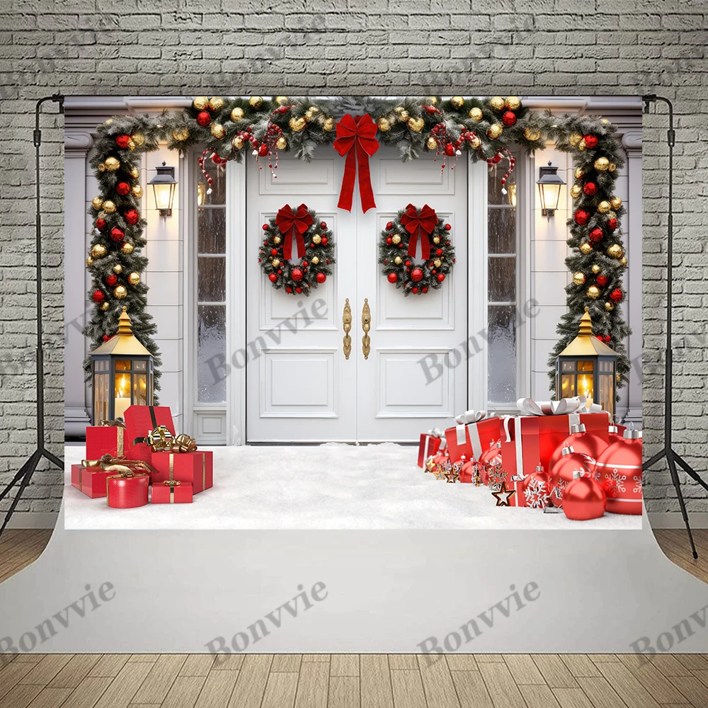 Bonvvie Рождественский фон дети портрет фотостудия фото реквизит Рождественская елка деревянная дверь фон для фотосъемки