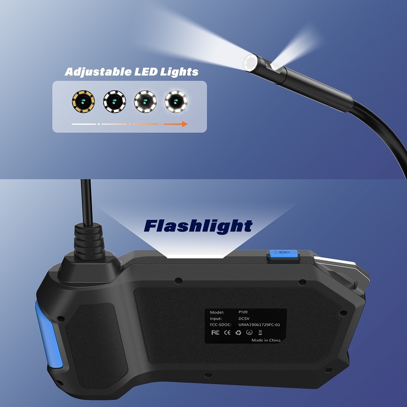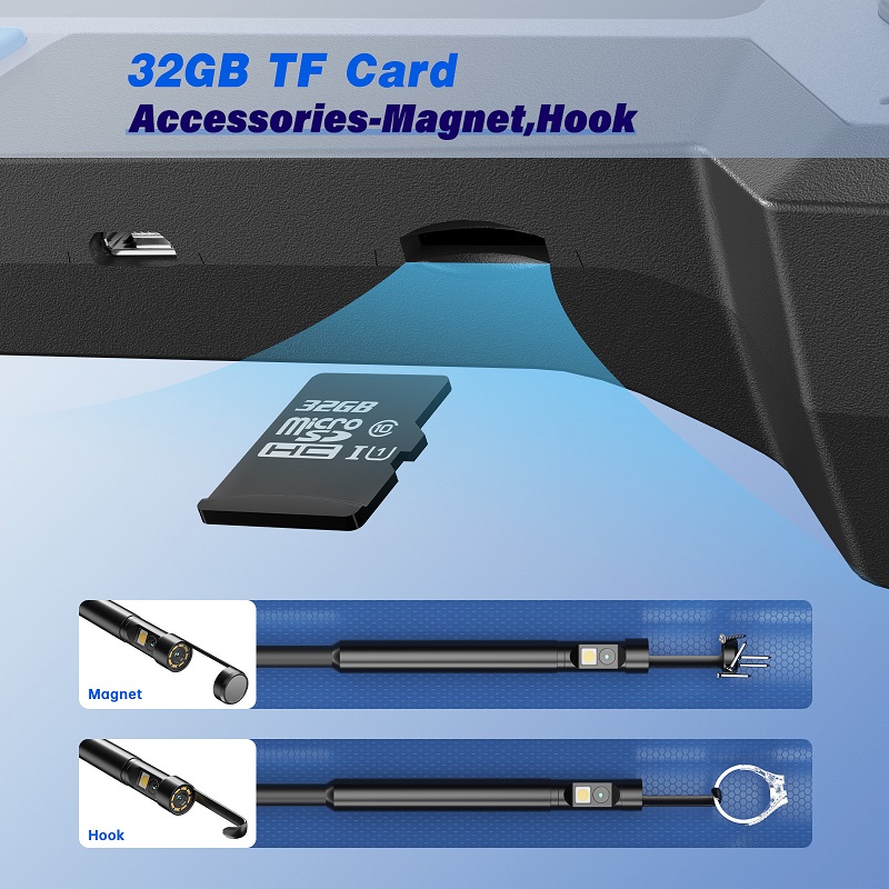 Бороскоп с функцией автовращения на 360 °, экран 4,5 дюйма IPS, двойной объектив, 360 градусов, 9 светодиодов, 32 ГБ
