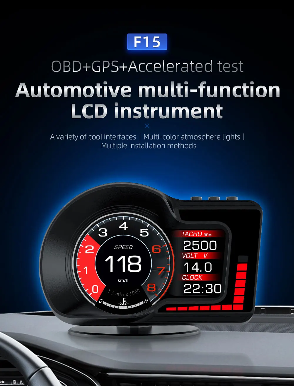 бортовой компьютер obd2 Автомобильный GPS-Спидометр F15 HUD OBD2, измеритель температуры и жира, превышение скорости, усталости и вождения, автомобильная электроника