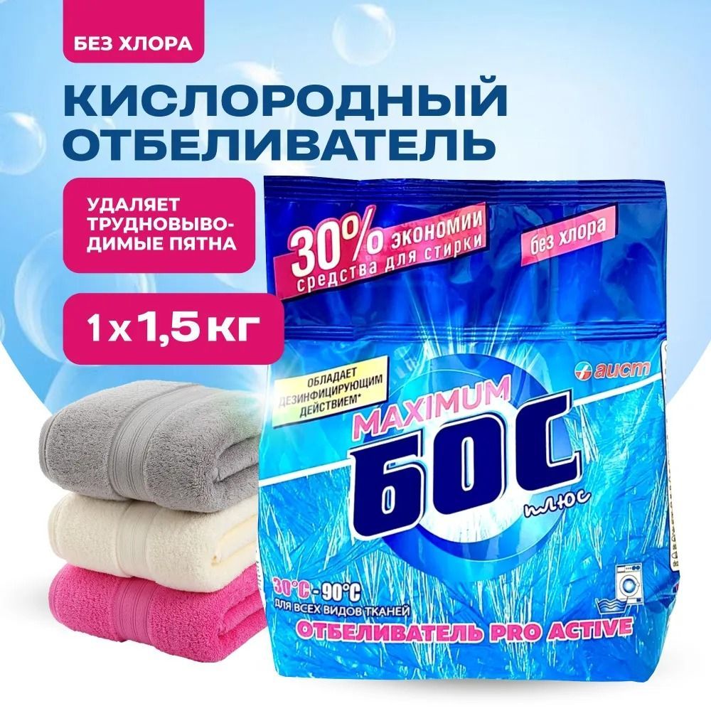 Отбеливатель для всех видов тканей Бос плюс Maximum, 1500 г - 1 шт