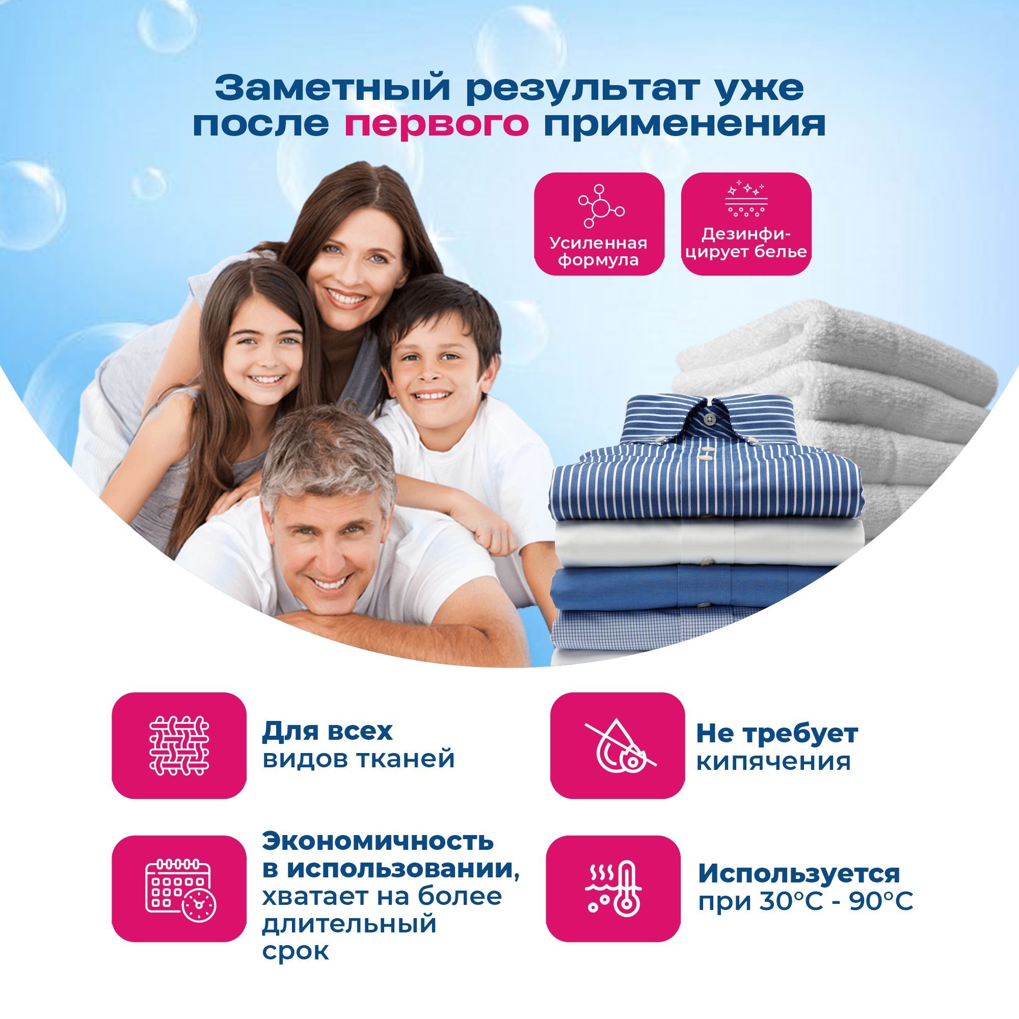 Прекрасно действует в сочетании с любым стиральным порошком;