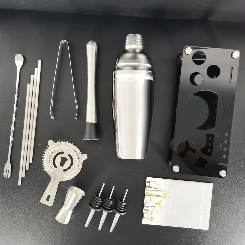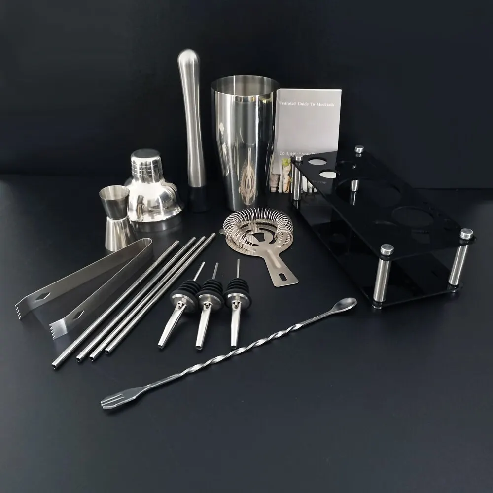 • Набор инструментов для шейкера для коктейлей бармена:В этот набор входит все, что нужно бармену для смешивания и встряхивания коктейлей, что делает его незаменимым для любого бара.