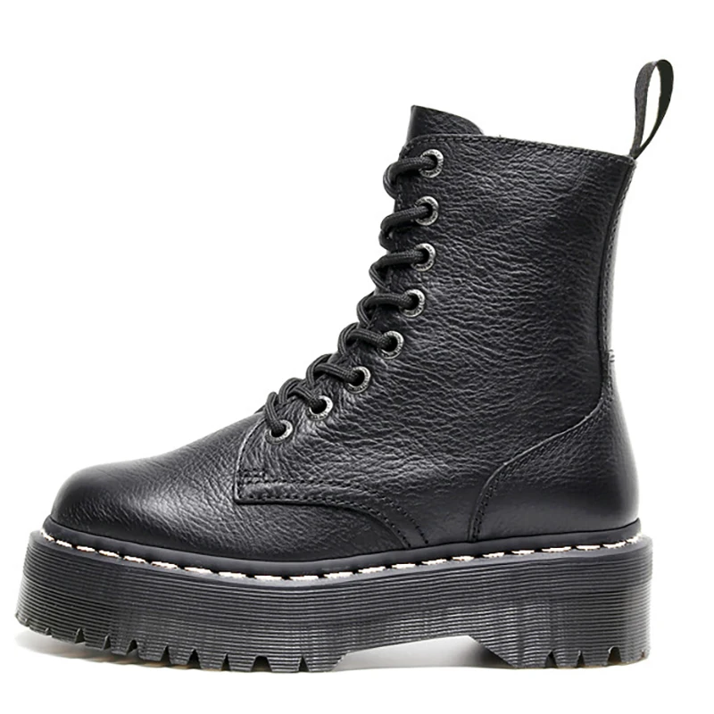 Ботинки женские из натуральной кожи, мотоциклетные ботинки на платформе, толстая подошва, боевые ботинки, обувь большого размера