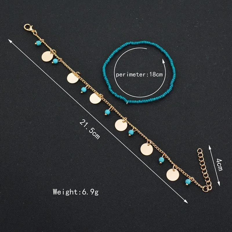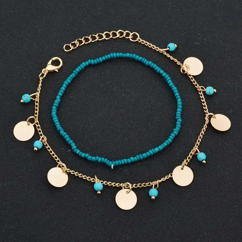 Браслет на лодыжку Женский, винтажный ножной браслет с бусинами в богемном стиле, цепочка на ногу с круглой кисточкой, летняя бижутерия, аксессуары