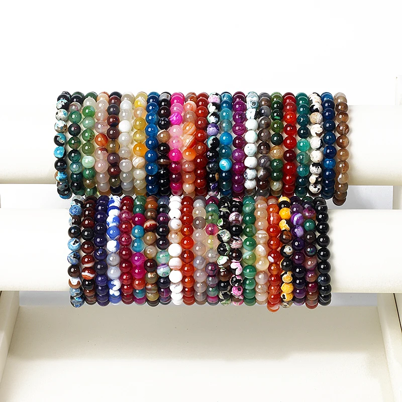 Браслеты из бусин из натурального камня, 6 мм, 8 мм, кристаллы, Агаты, исцеляющая энергия, зеркальная полировка, мужские браслеты для женщин