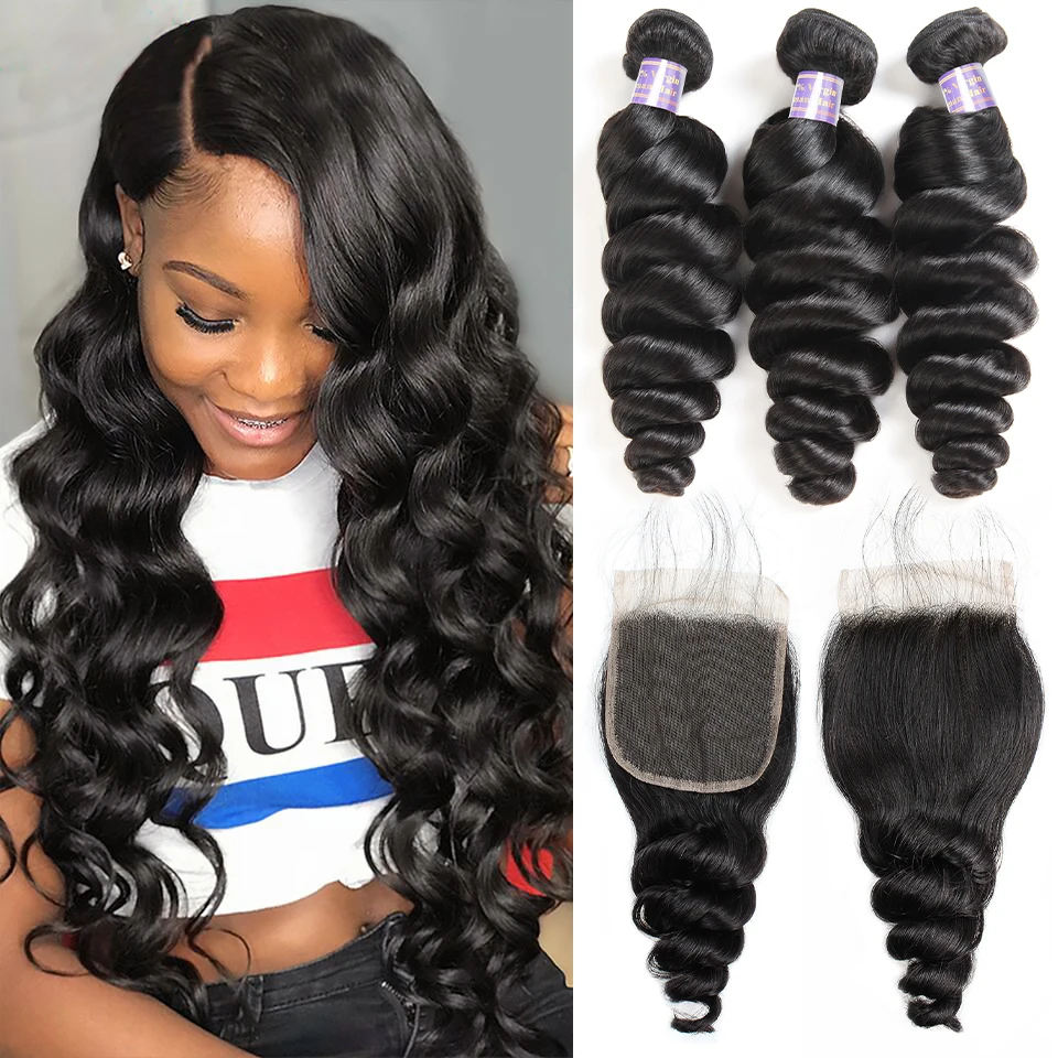 Hair Type Brazilian Loose Wave Bundles With Closure